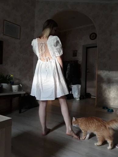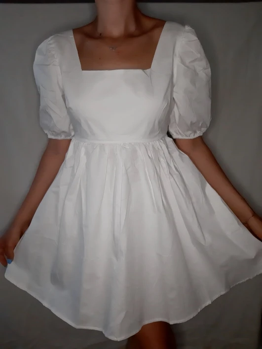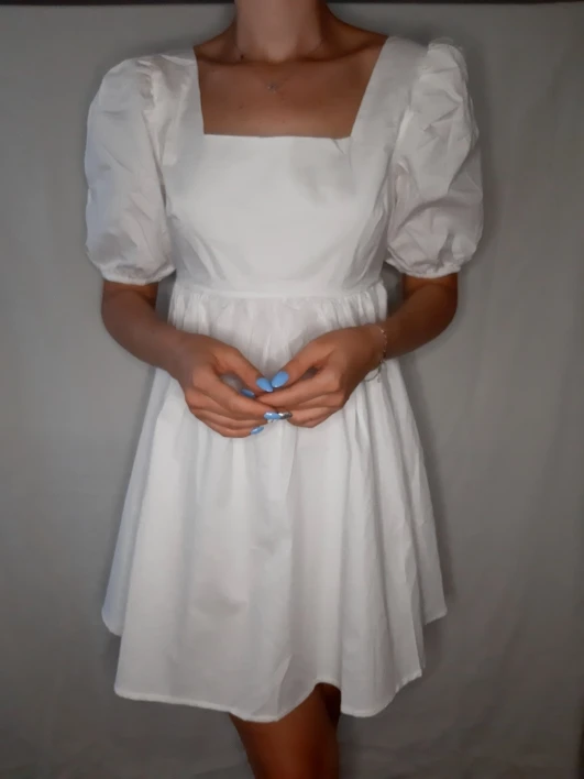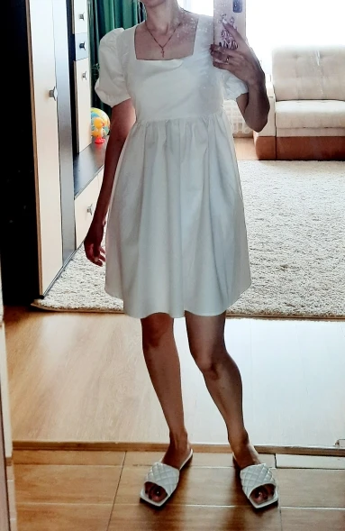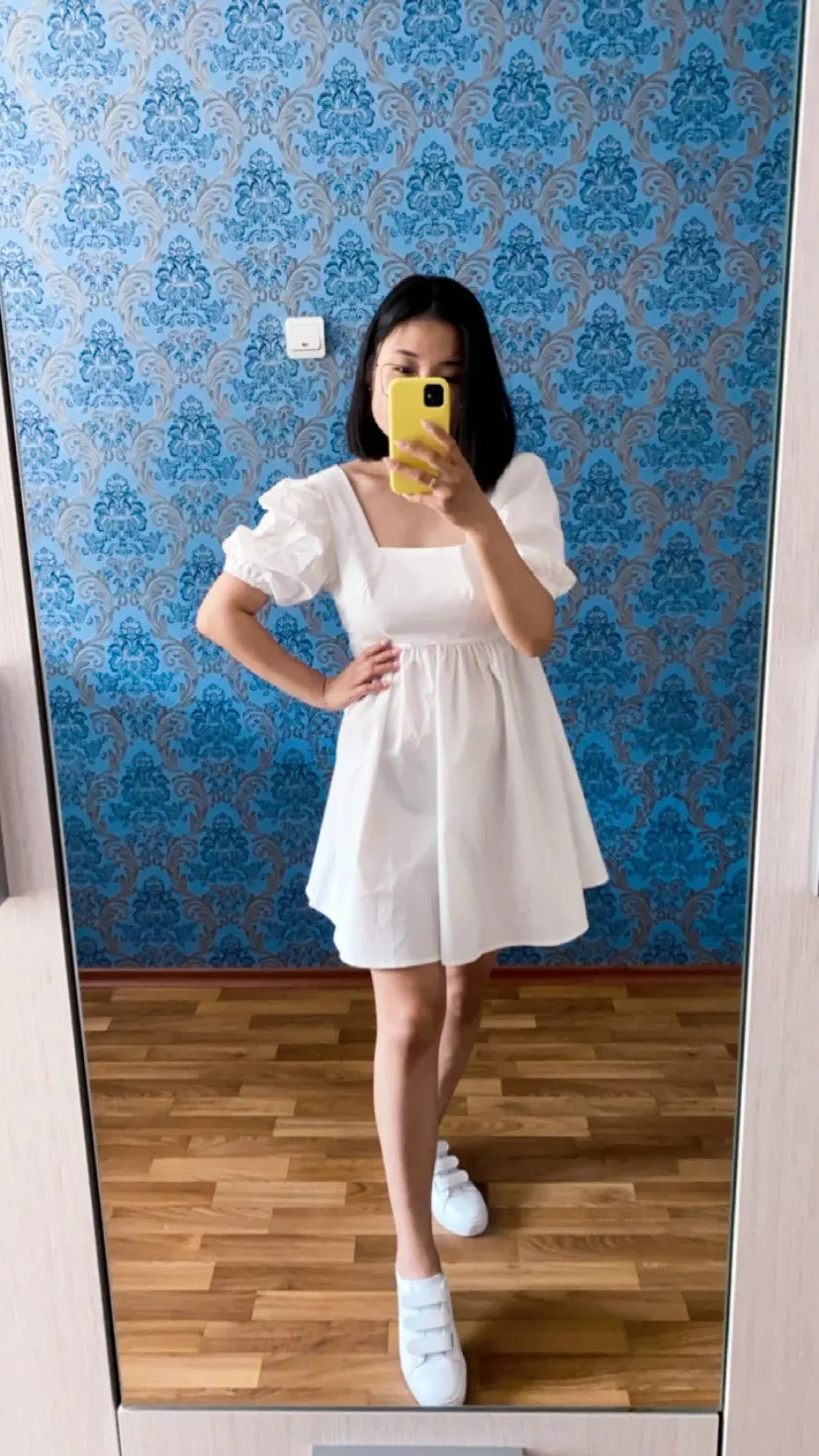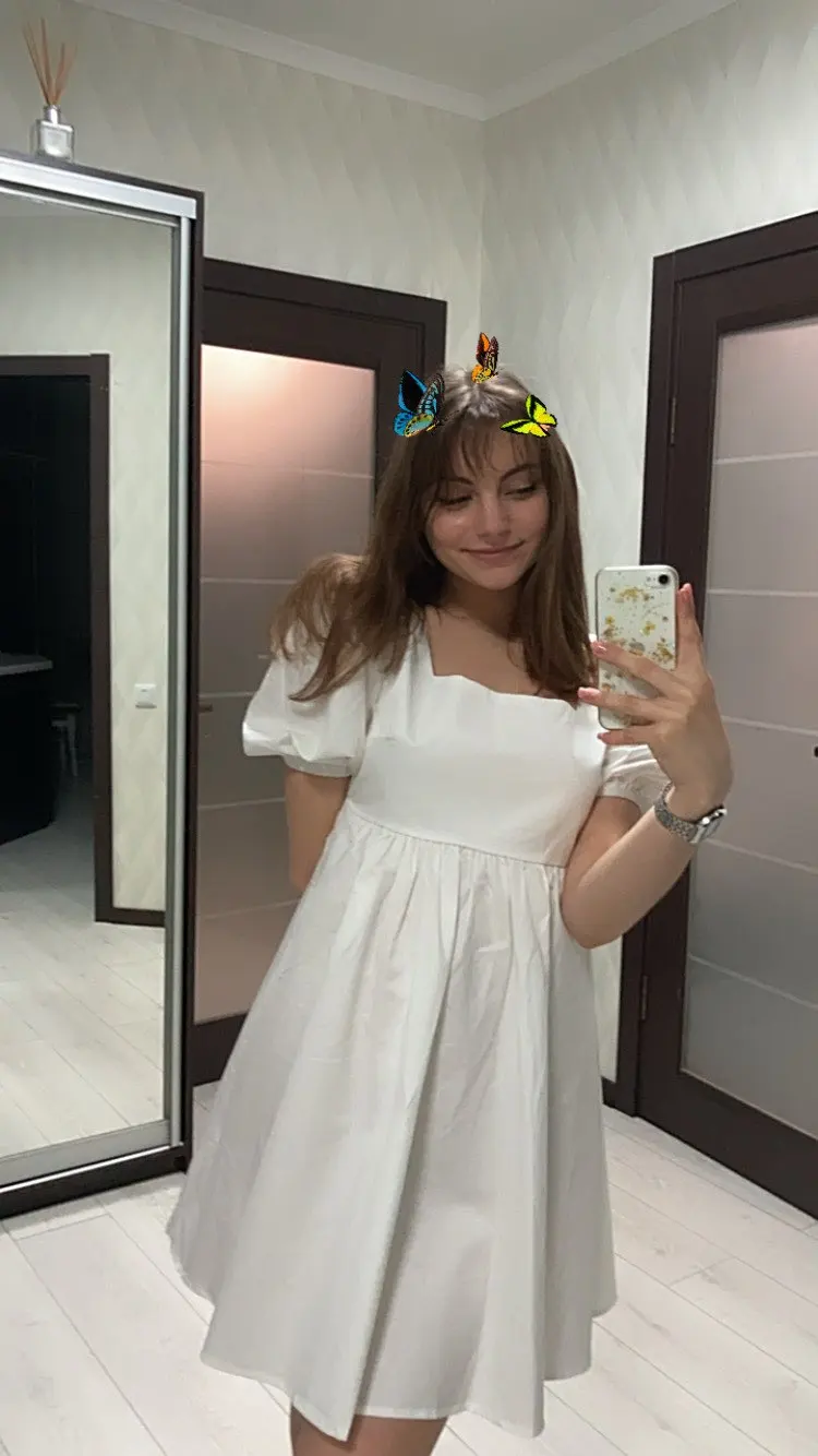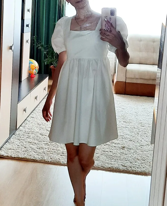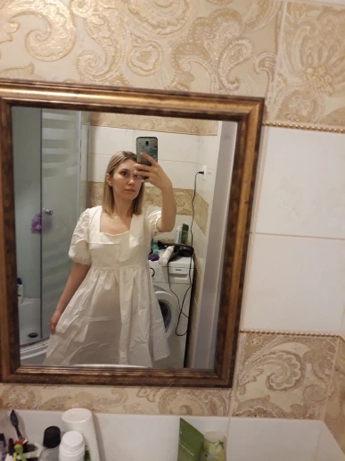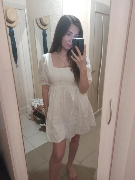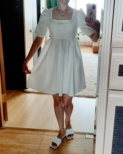 The dress came in 13 days to Ufa in Pyaterochka. The dress is excellent, dense fabric, keeps the shape, sewn neatly, the cons-it is badly ironed and quickly crumpled, narrow rubber bands on the sleeves, but I'm not but not very much, I will not interrupt. Strange thing, I was ready that the dress in the size of S will be great and will have to fit under me. I'm 158 cm, weight 45 kg, wear XXS; and the dress as if it's even not enough for me, short, and a little press in the chest. I'm very surprised, judging by the reviews, on other girls who are much higher and denser than I, the dress sits freer and longer. But I wrote to the store that he put me the smallest dress; I do not know if for me they really made a shorter or now the size s reduced in the factory). I'm in it as a beautiful white cloud, Princess, doll, no words, very beautiful dress)))