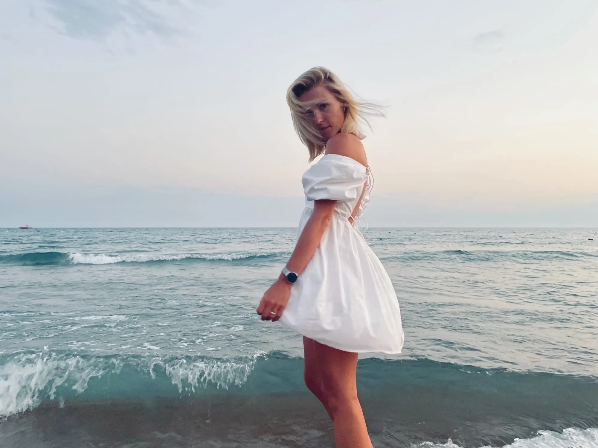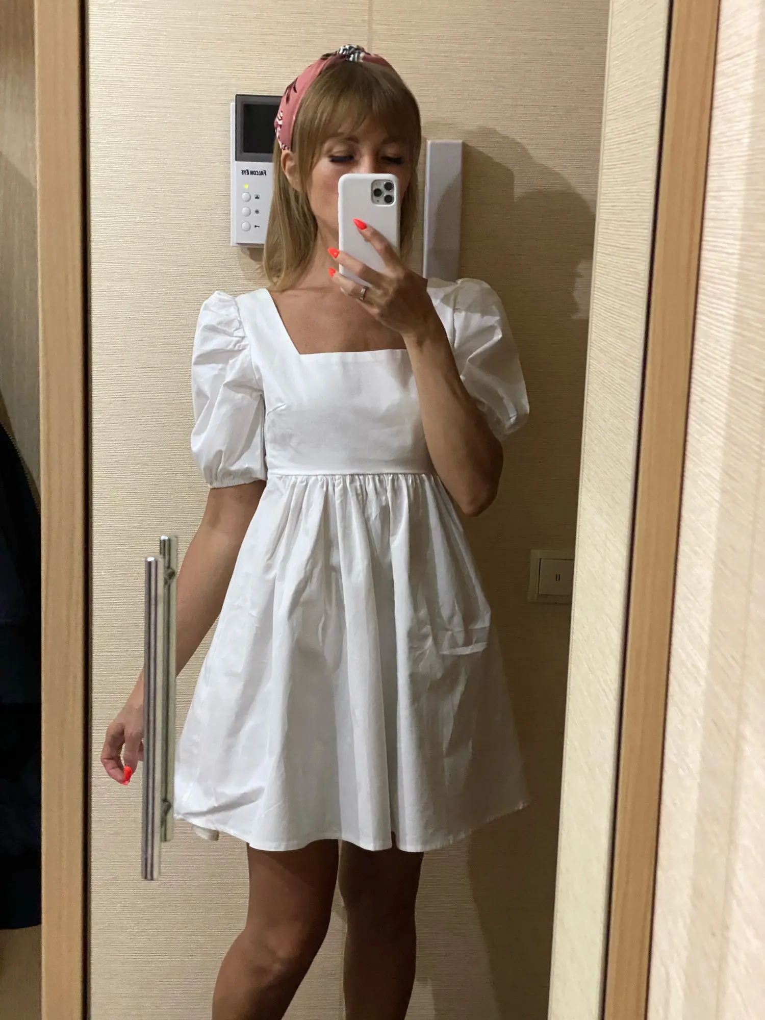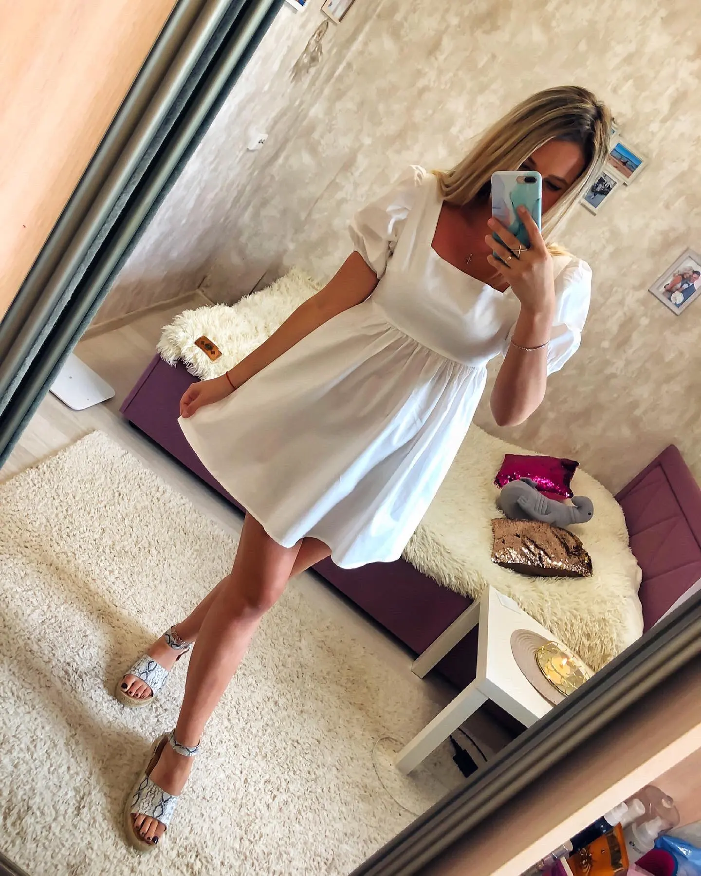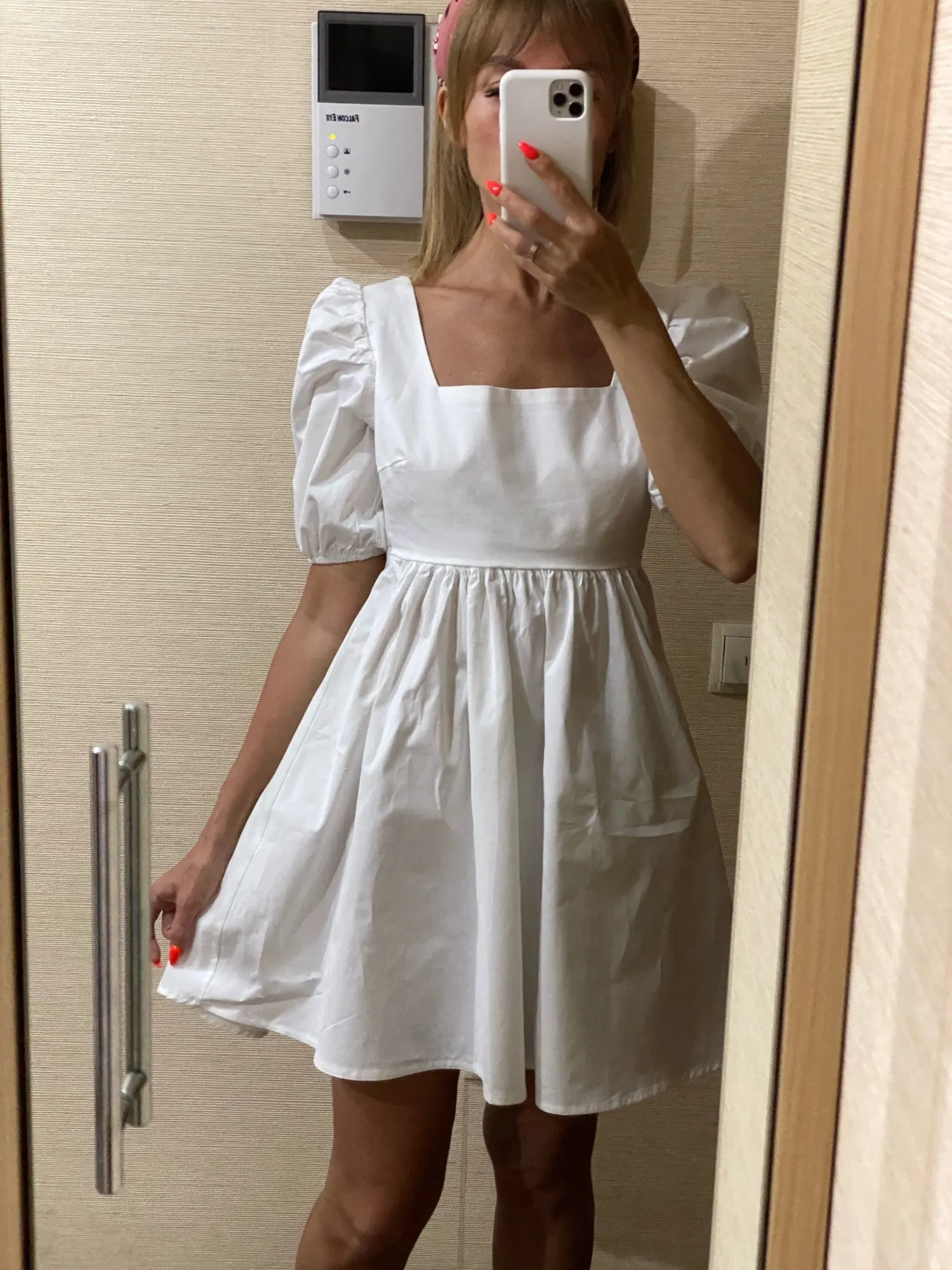 The dress came in 13 days to Ufa in Pyaterochka. The dress is excellent, dense fabric, keeps the shape, sewn neatly, the cons-it is badly ironed and quickly crumpled, narrow rubber bands on the sleeves, but I'm not but not very much, I will not interrupt. Strange thing, I was ready that the dress in the size of S will be great and will have to fit under me. I'm 158 cm, weight 45 kg, wear XXS; and the dress as if it's even not enough for me, short, and a little press in the chest. I'm very surprised, judging by the reviews, on other girls who are much higher and denser than I, the dress sits freer and longer. But I wrote to the store that he put me the smallest dress; I do not know if for me they really made a shorter or now the size s reduced in the factory). I'm in it as a beautiful white cloud, Princess, doll, no words, very beautiful dress)))