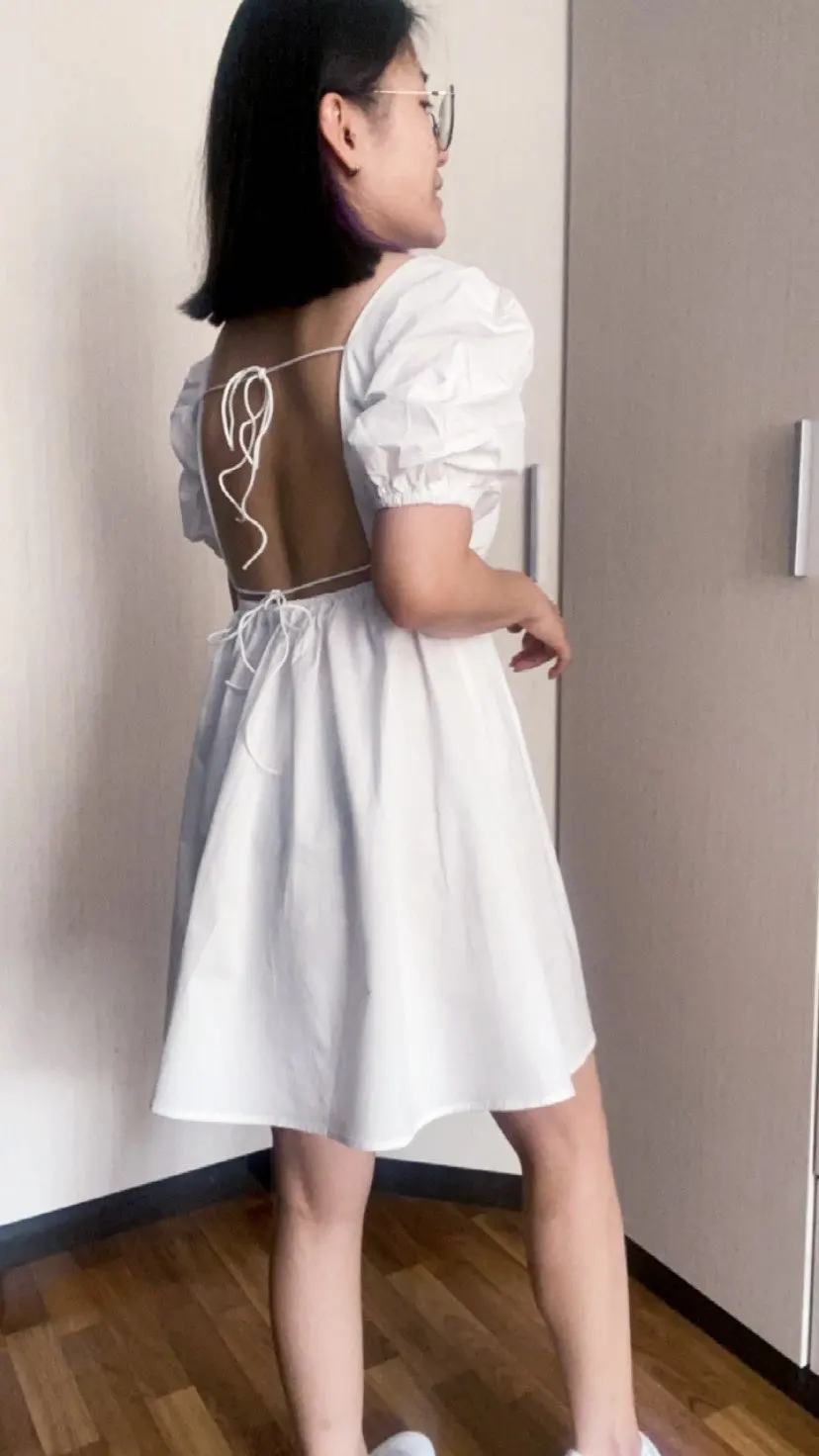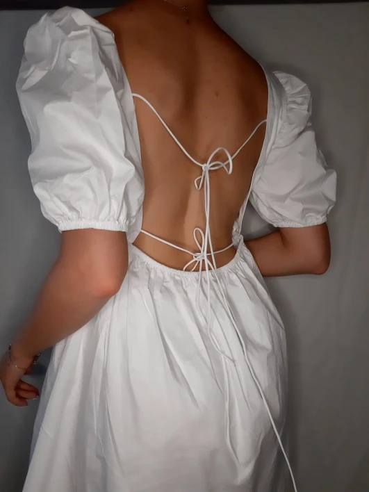 FREE SHIPPING White Elegant Summer Dress Puff Sleeve JKP4625