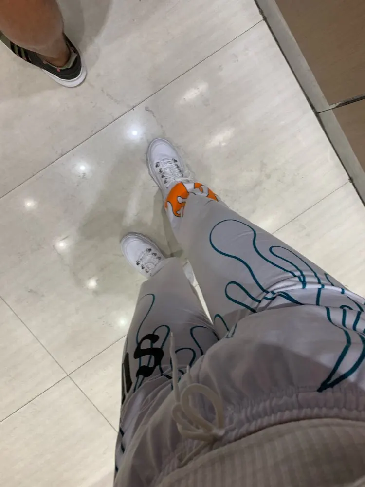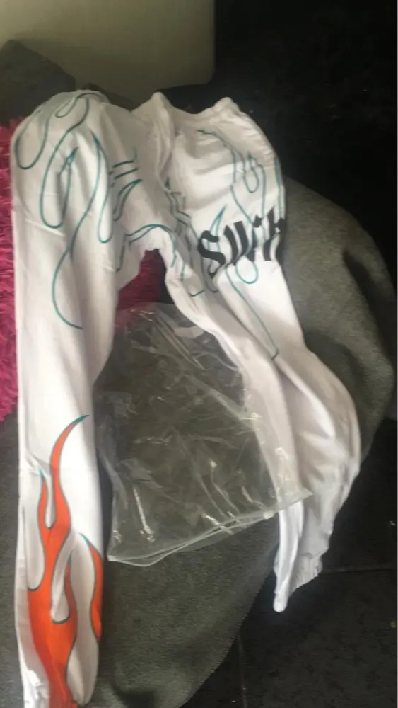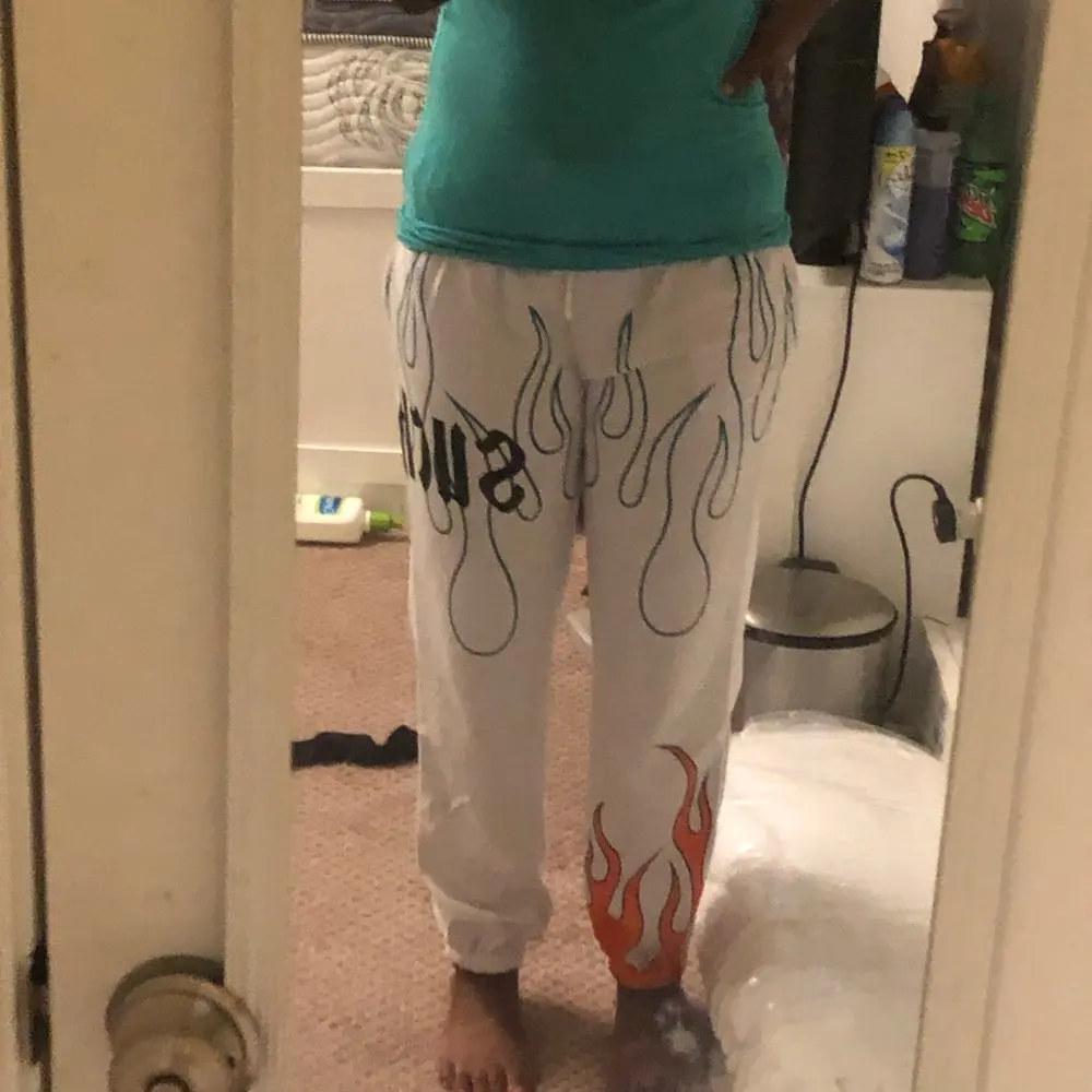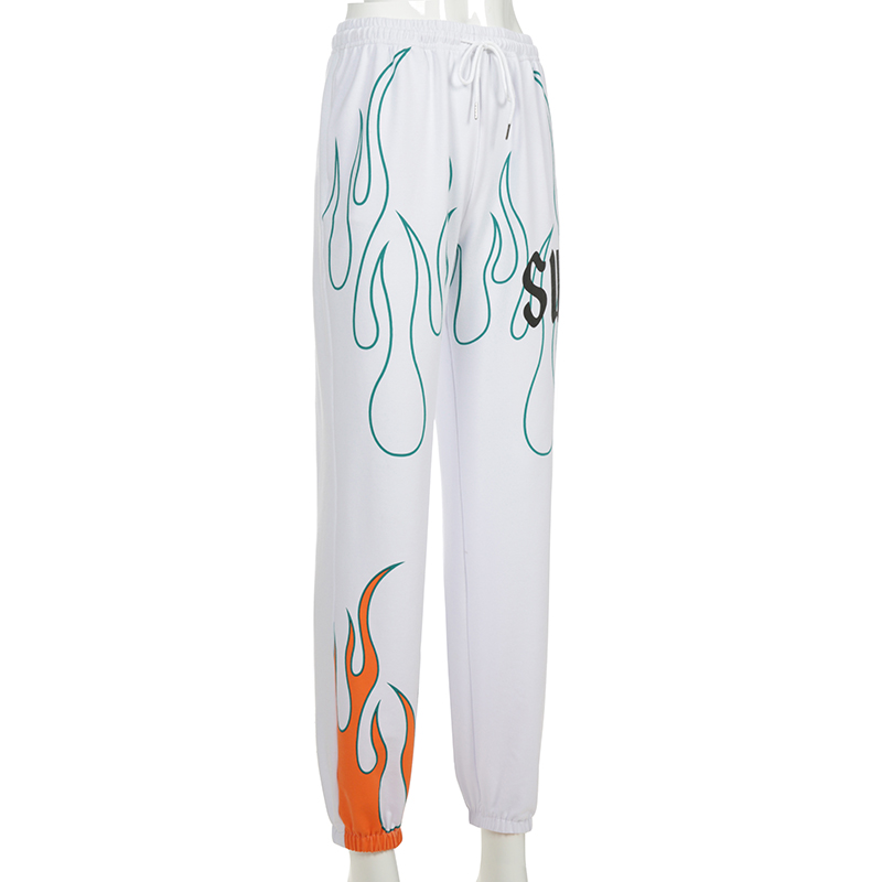 FREE SHIPPING White Flaming Fire Printed Streetwear Pants JKP3062