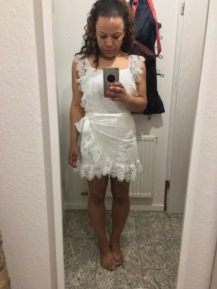 Of 10! Same as the picture. It's beautiful on. Looks like a expensive piece. I love it. Fast shipping. The fabric as well as the lace is of quality. Very happy!