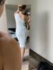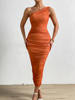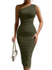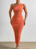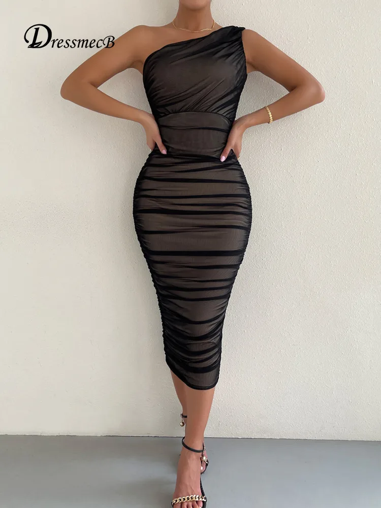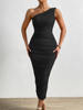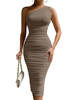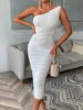 FREE SHIPPING White Midi Dress One Shoulder Backless Ruched With Mesh Double Layer JKP6064