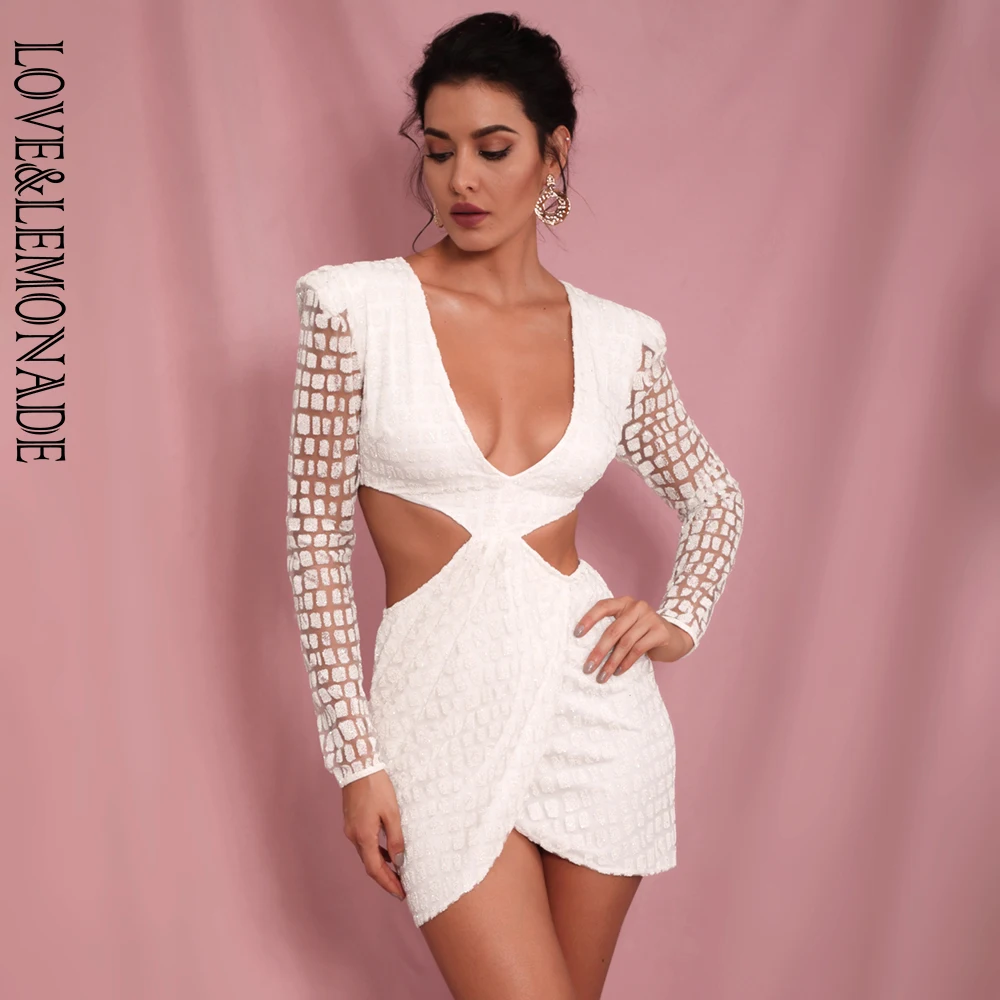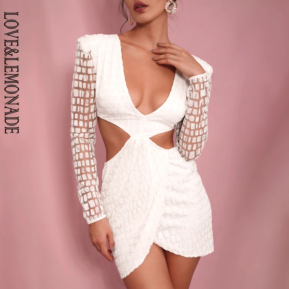 FREE SHIPPING White Party Dress Deep V-neck Open Back Cross Glitter Slim Fit