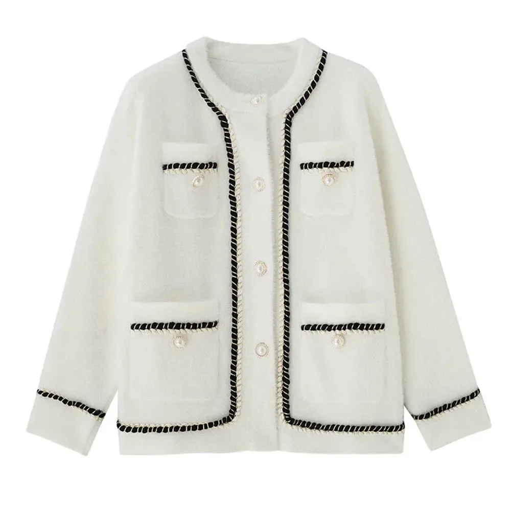 FREE SHIPPING White Retro Knitted Cardigan Sweater Korean Style JKP6121