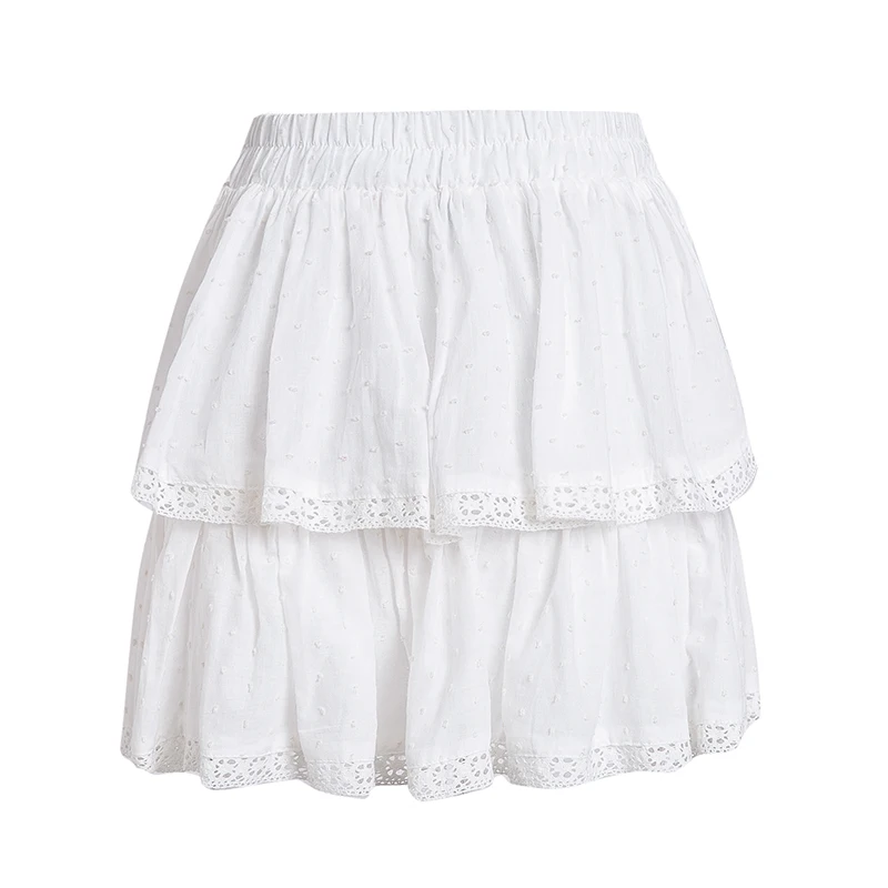 FREE SHIPPING White Ruffle Lace Short Skirt 2019 Summer Women Casual Fashion Polka Dot Short Skirt Girl Holiday Chic Skirt JKP2584