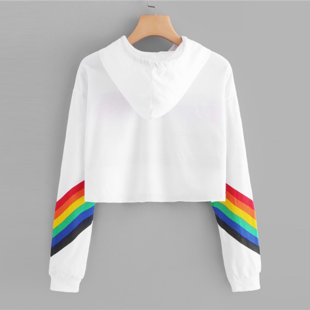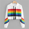 FREE SHIPPING !! White Streetwear Rainbow Print Crop Hoodie Pullover JKP1012