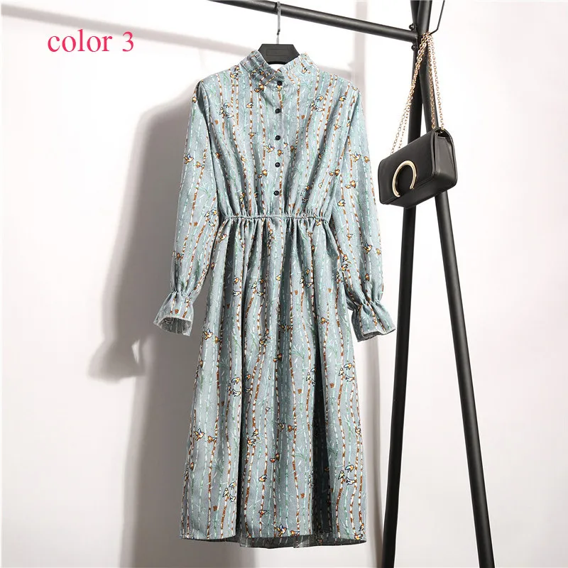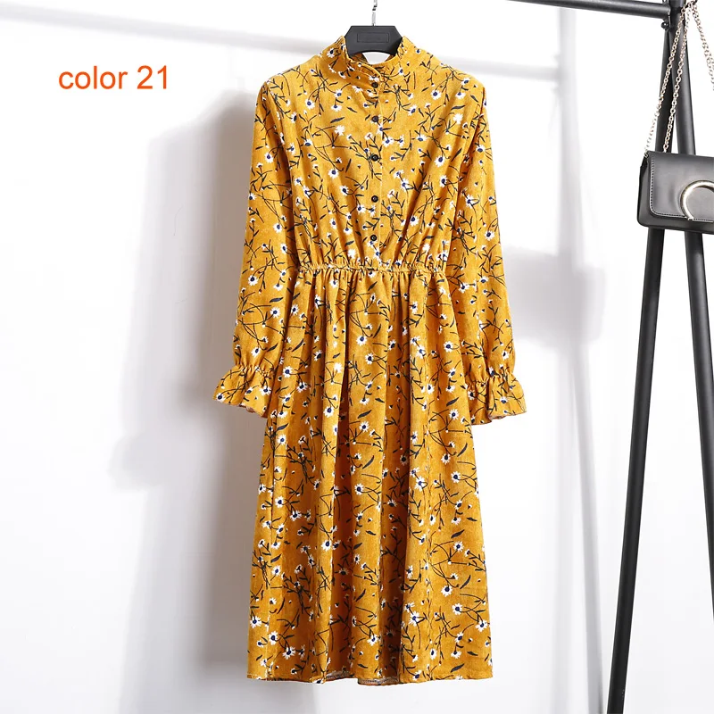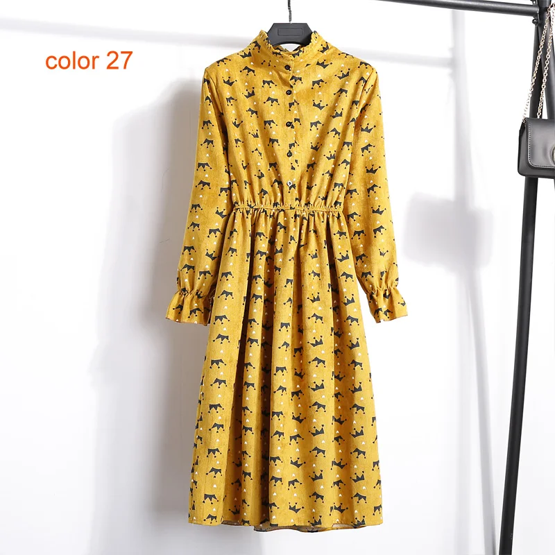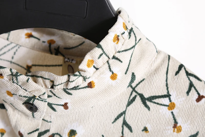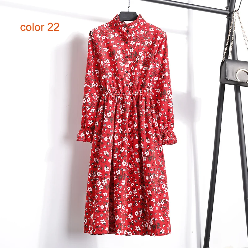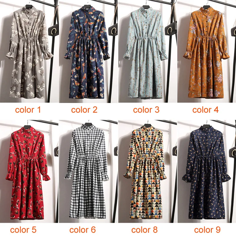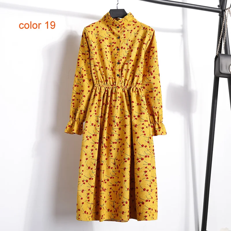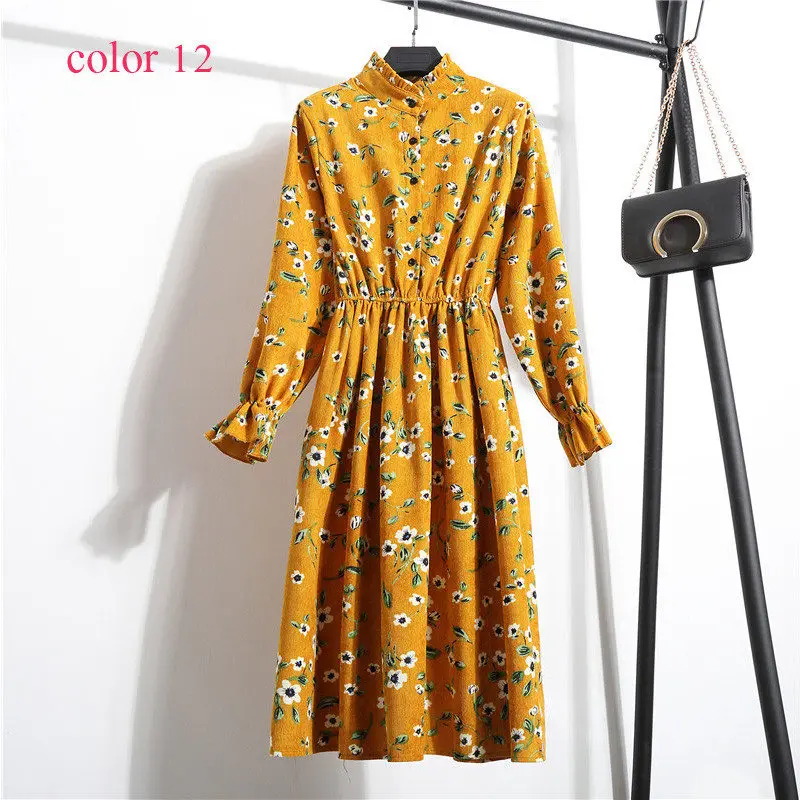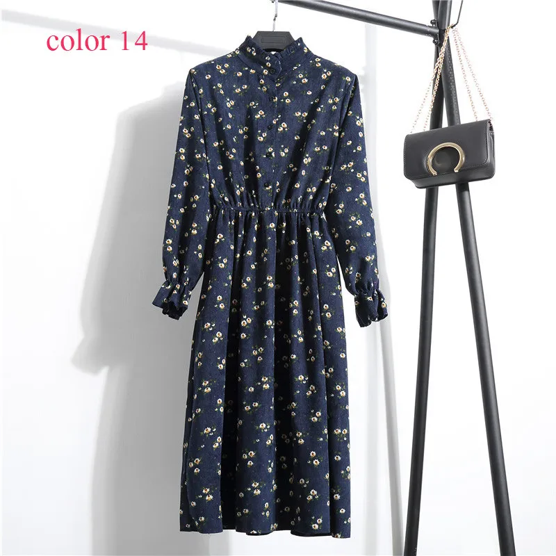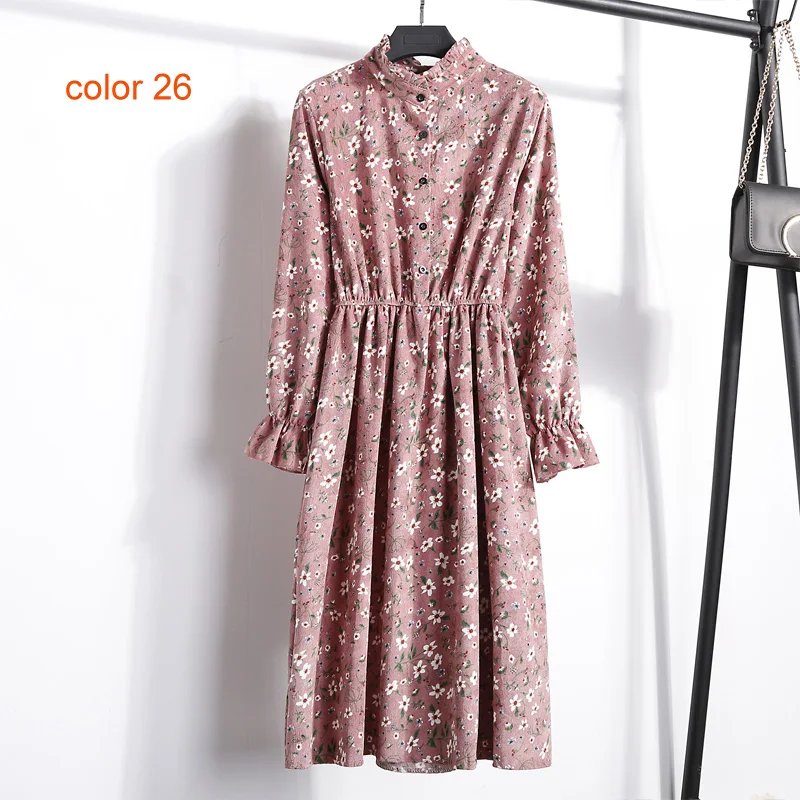 FREE SHIPPING Winter Corduroy Floral Print Women Elastic Waist Autumn Winter Dress JKP3583