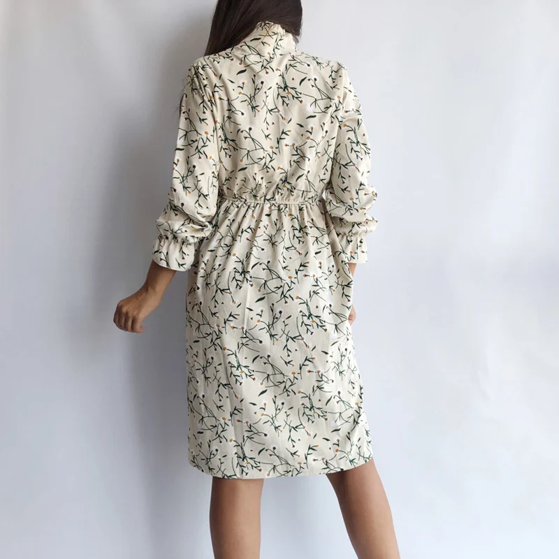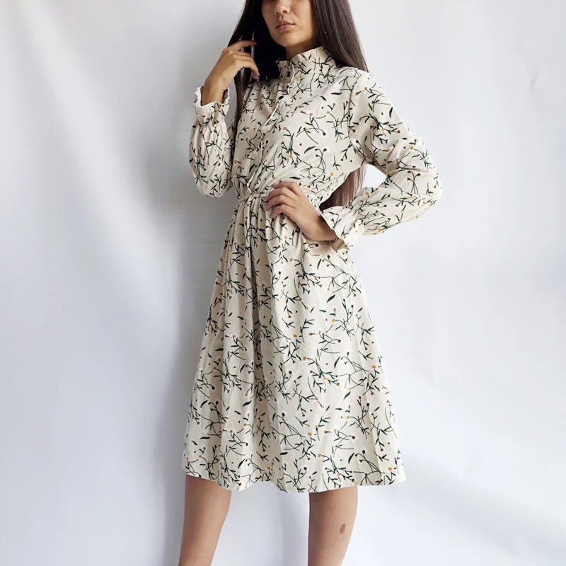 The dress is of good quality, there is practically no thread. Thin corduroy. At 42-44 s the village is good: The shoulders are in place, the length is knee-length. However, the waist is slightly higher than necessary (height 166) and the sleeves for my taste are short. I ordered light with daisies, in the photo it looks whiter, in fact in beige.