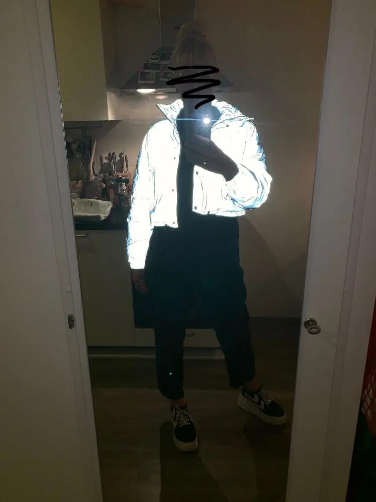 So already a lot of reviews, so i will not paint. The jacket is very cool, to say that it is worth its money-not to say anything. I did not regret that i bought it. Of the pros: well reflects, even if a slight light, (people on the street do compliment the jacket), the day also very beautifully reflects the sun, although the color itself is also gorgeous. The jacket is dense, at a temperature of 10 degrees with the water tank is not cold, very comfortable. A lot of things will suit from the wardrobe. Of the minuses, perhaps only that it is some asymmetrically wide, the sleeves are short, i took the size in size, given that i always wear xs-jacket back to back, i wear unbuttoned. Delivery exactly on time, very quickly came