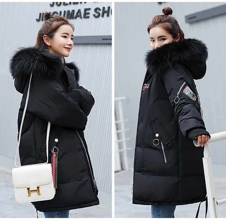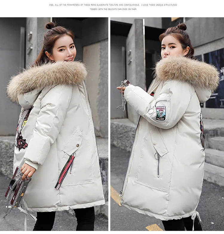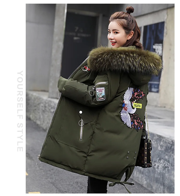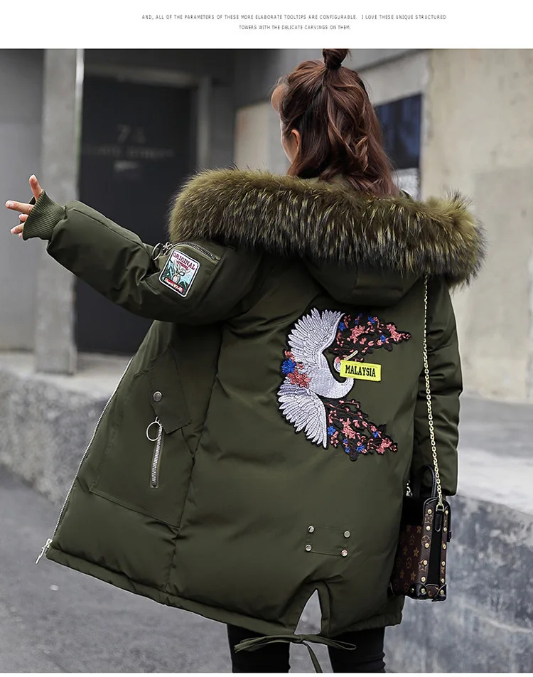 FREE SHIPPING Winter Jacket Women Fur Hooded Parka Long Coats embroidery Cotton Padded Winter Coat Women Warm Thicken Jaqueta Feminina JKP2674
