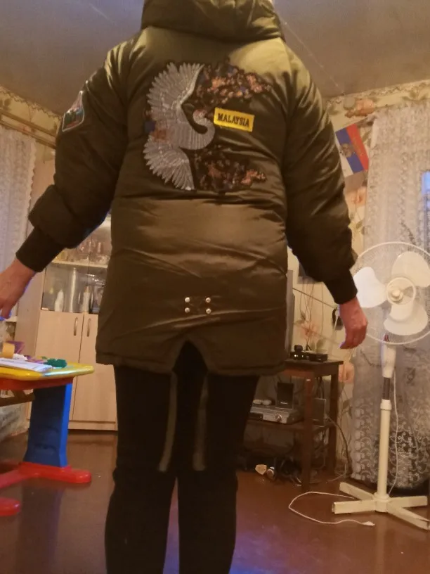 Finally came my jacket, 32 days of the way. quality is good, fit in size. 3 xl fits in russian 54 no more. measurements in the table of the store is not accurate in my jacket chest girth 120 cm, Thigh 128 cm, length 83 cm, although i have a chest of 107-108, hips 110-112 on me it does not hang out, and since there should be a winter jacket. how good that i did not order less. the jacket is warm, the fur did not look, because i do not like wearing fur.