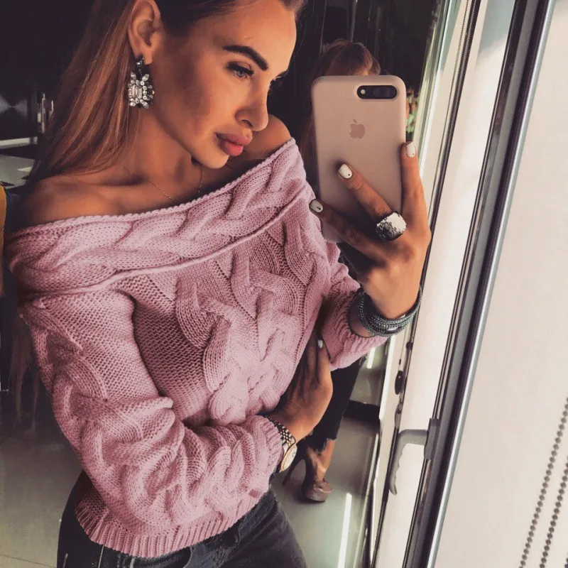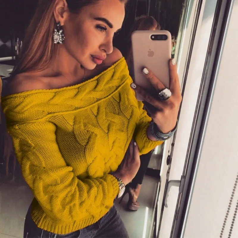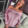 FREE SHIPPING Winter Knitted Sweater Off Shoulder JKP1368