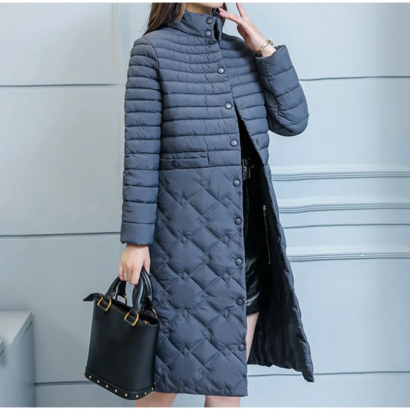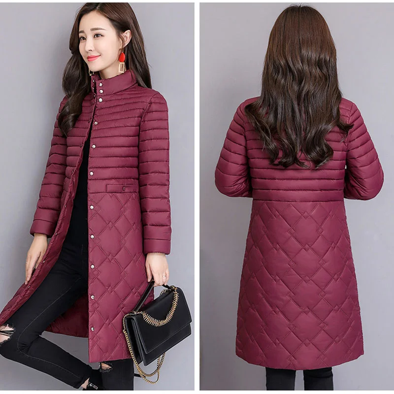 FREE SHIPPING Winter Quilted Long Padded Cotton Jacket Women Parka Stand Collar Female Parkas Plu Size 5XL 2019 Autumn Thicken Warm Coat Woman JKP2798