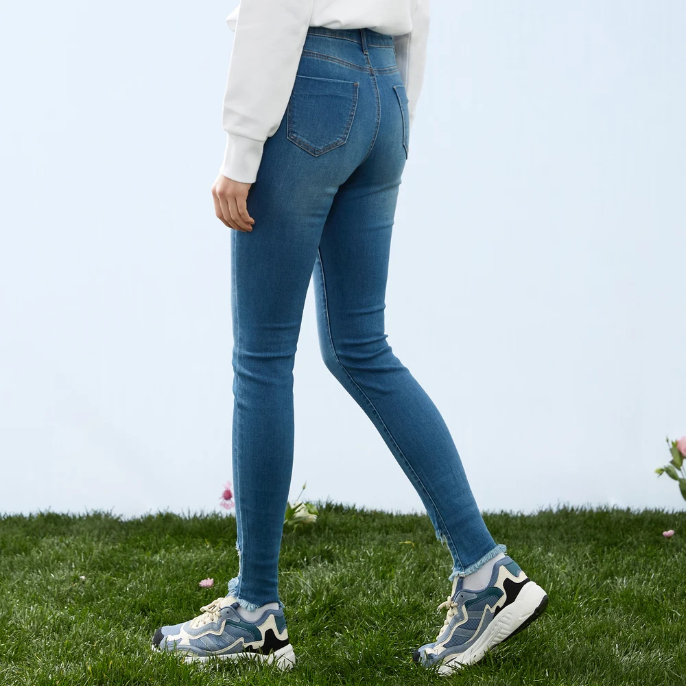 Jeans to the bottom narrowed. Waist high. Stretch well