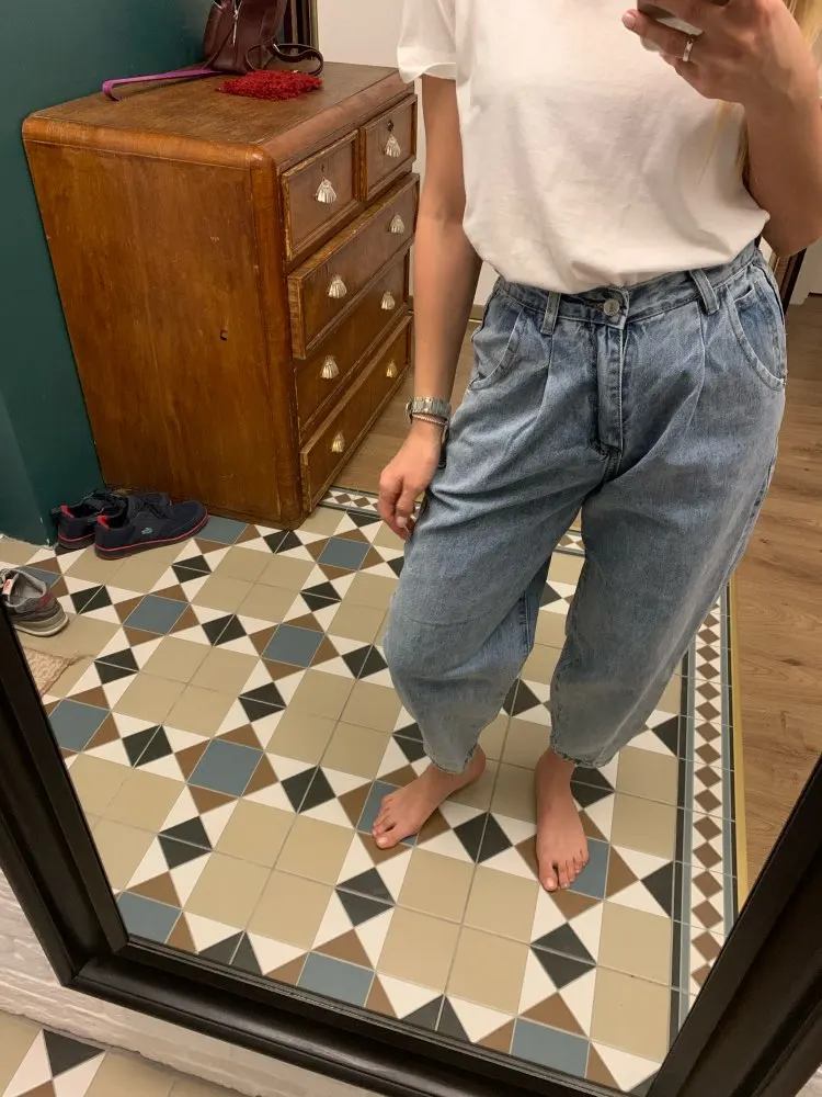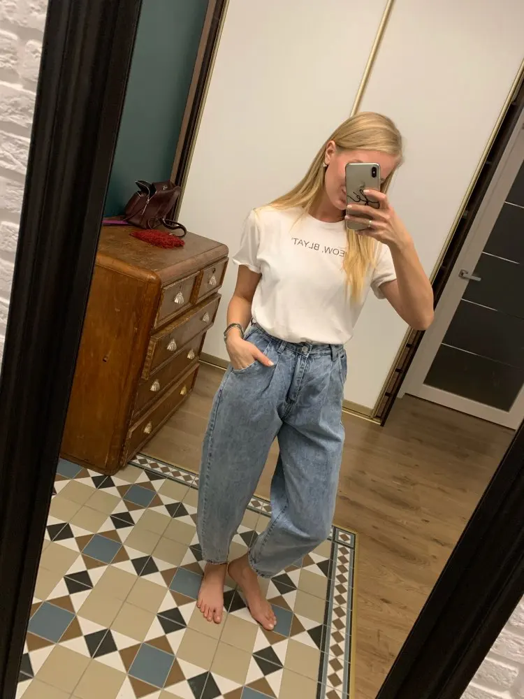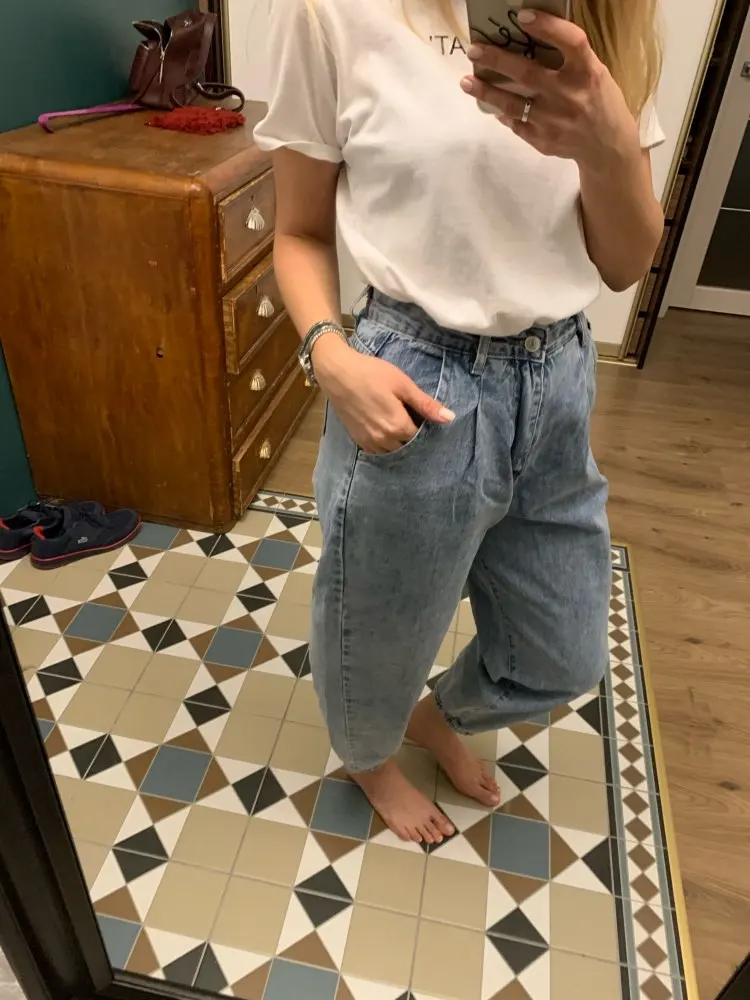 Came very quickly, about two weeks to Moscow. I took the size of the smallest, at the waist sat perfectly. But it seems to me they are wider than in the photo from the store XD the fabric is very good, I liked the seams quality, but in general jeans quality. PS can just iron them? ..