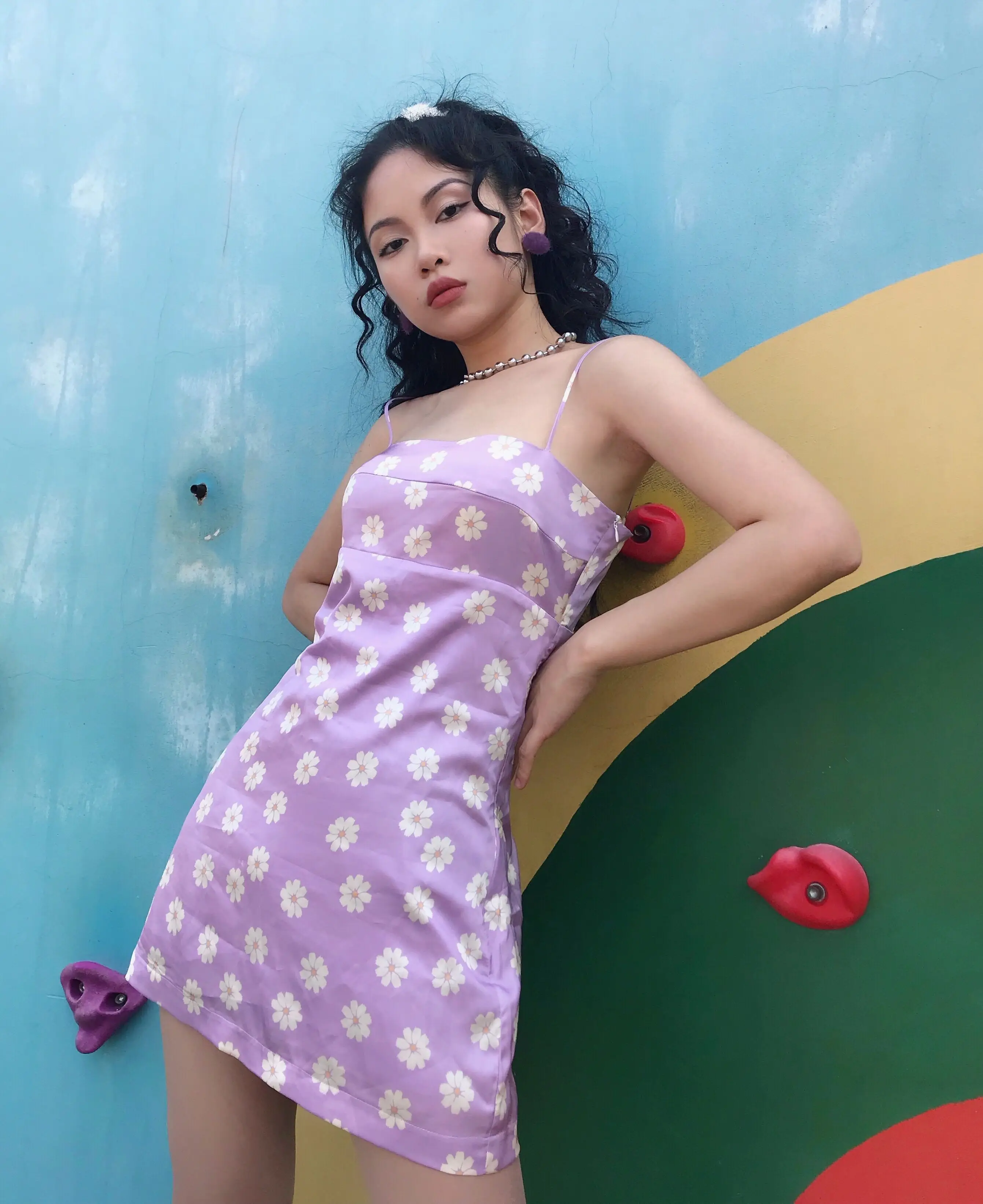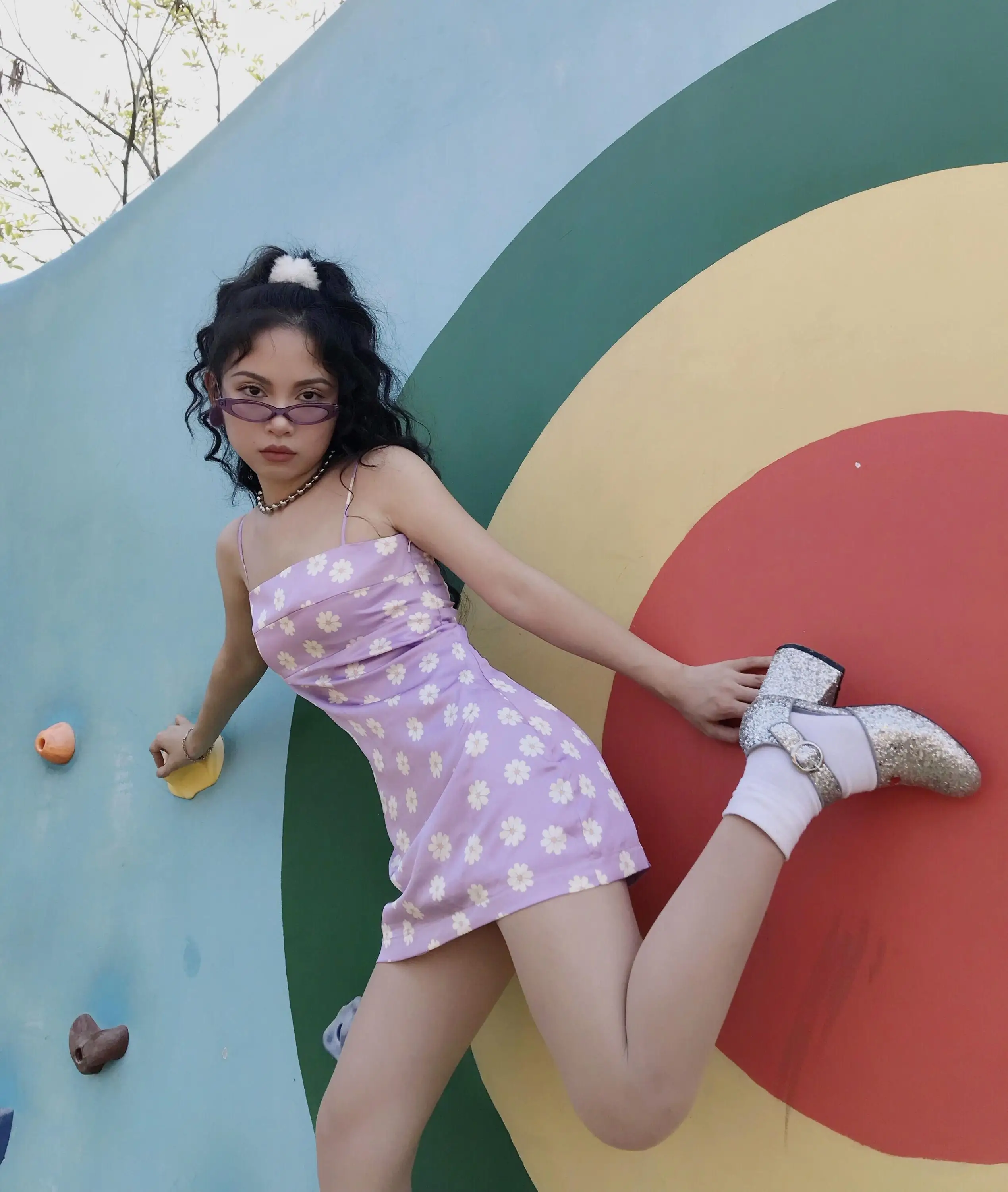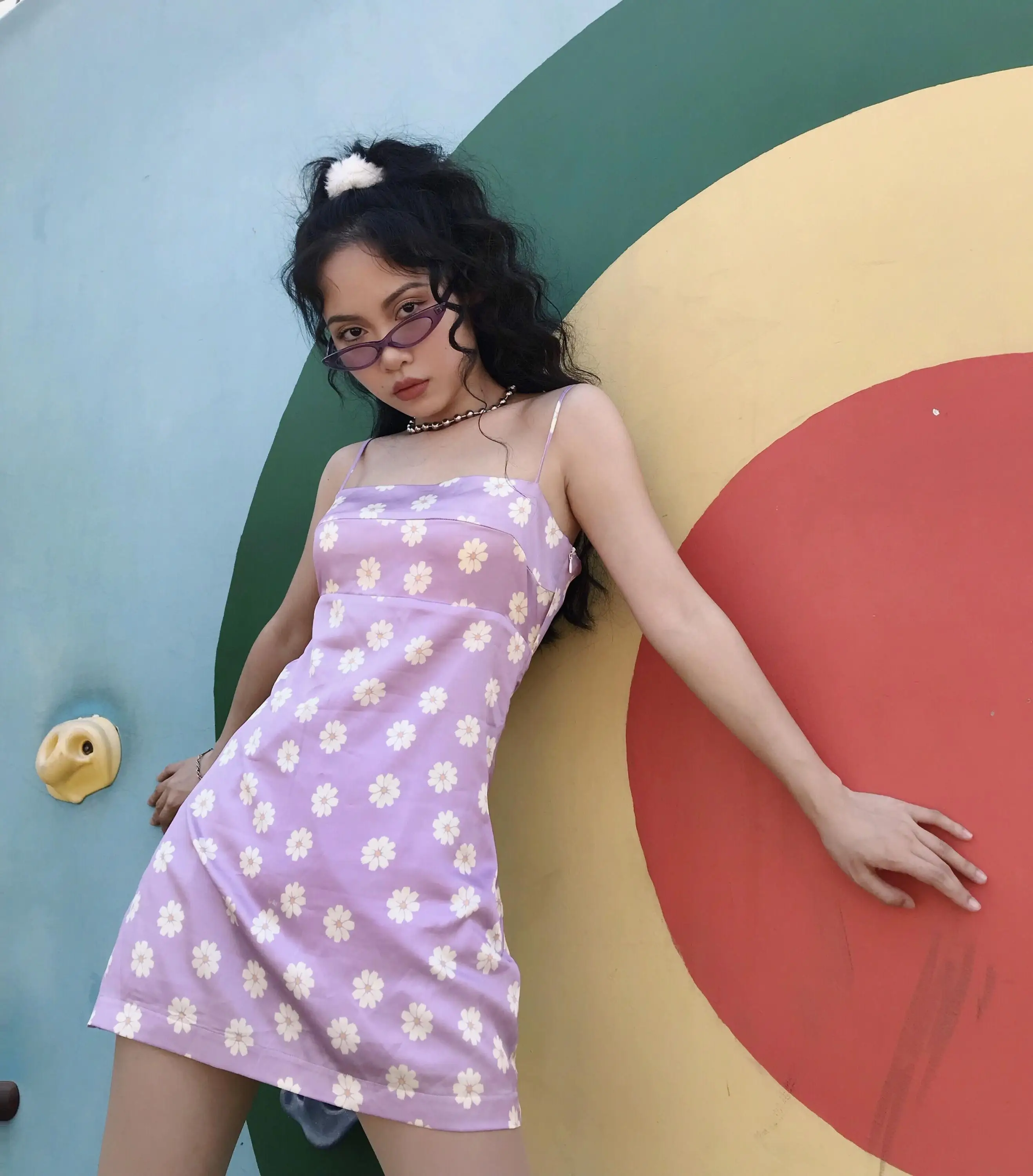 FREE SHIPPING Women 90s Retro French Daisy Garter Mini Dress JKP1091