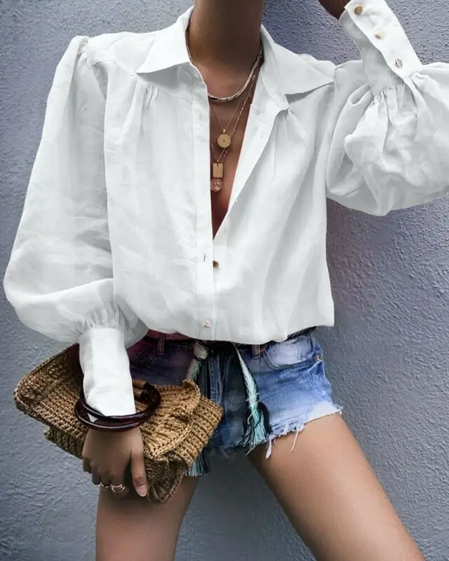 FREE SHIPPING Women 90s Solid V-neck Shirts JKP3047