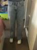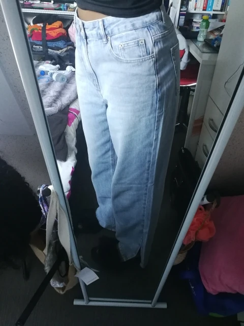 Great! I'm 1m56 so I had to cut 2-3 cm and it's perfect! (Sorry my mirror is dirty). I recommend it. Received super quickly, and the jeans do not smell new super strong, I was afraid of that.