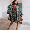 FREE SHIPPING Women African Dress Flower Print Slash Neck Off The Shoulder Backless Polyester JKP6057