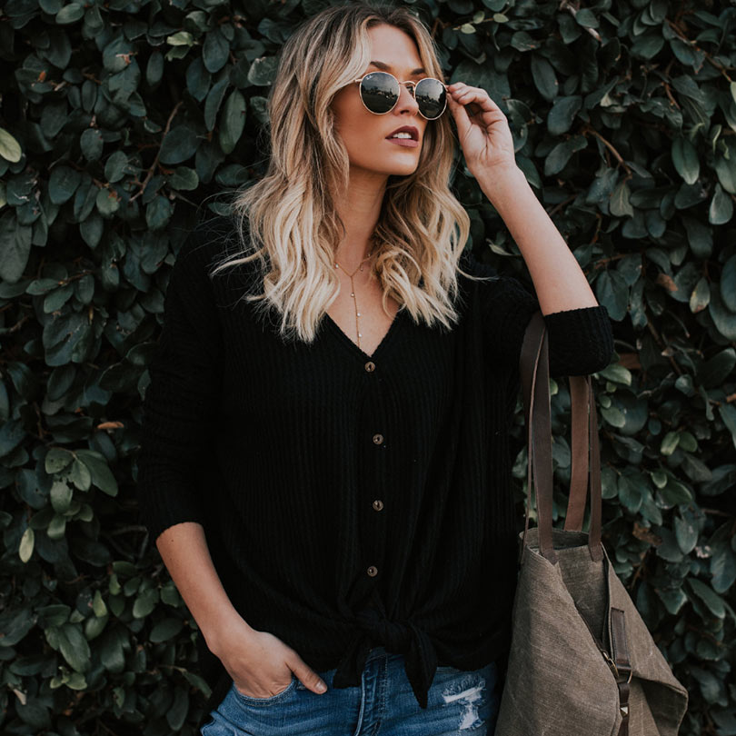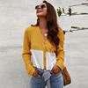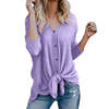 FREE SHIPPING Women Autumn Blouse Waffle Button Up Front Bow Oversize Loose Knit Blouse Shirt Tops Women Blusas Fall New JKP2277