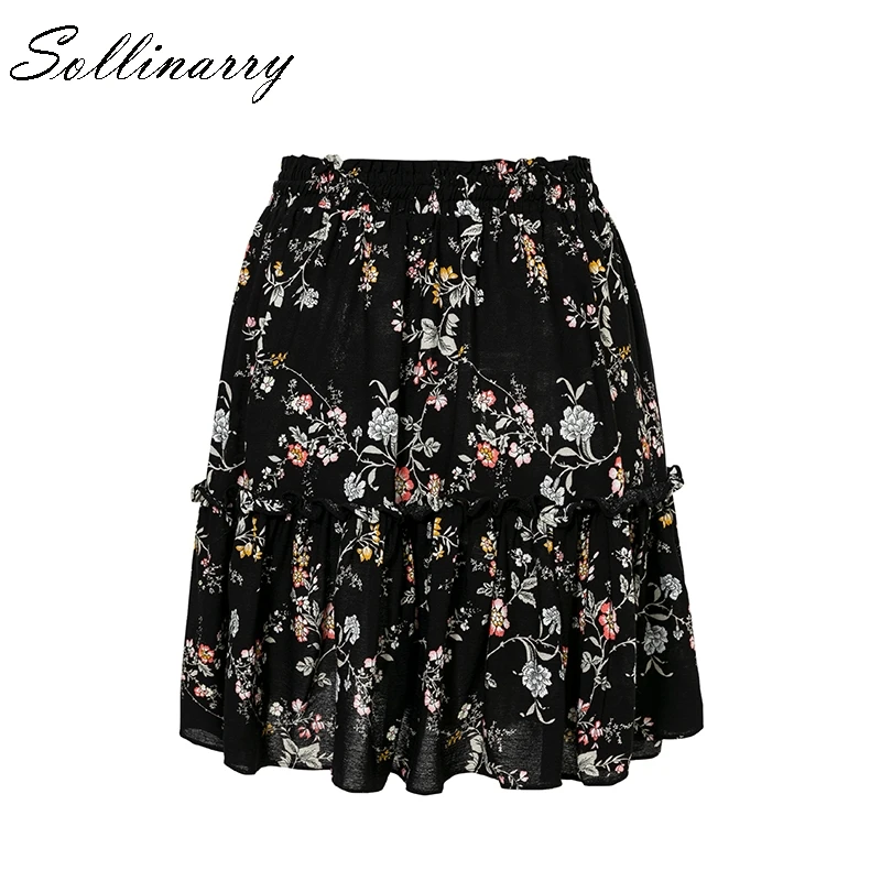 FREE SHIPPING Women Autumn Floral Chiffon High Waist Fashion Ruffle Skirt JKP3569