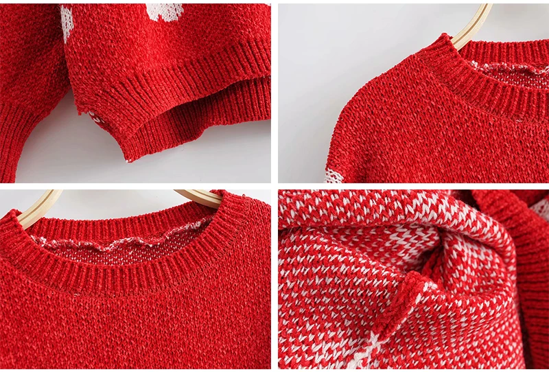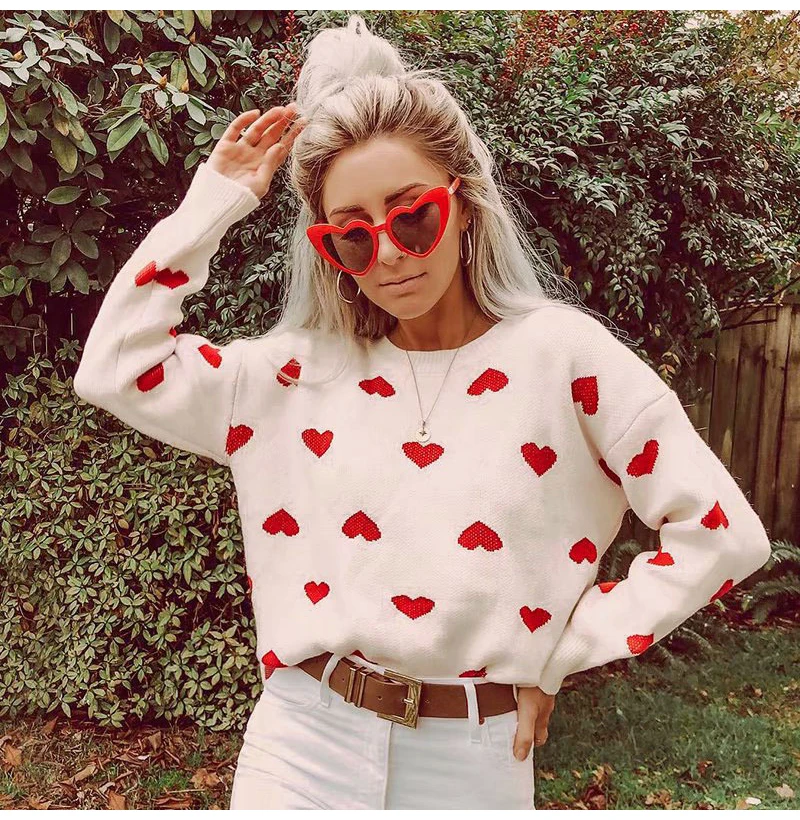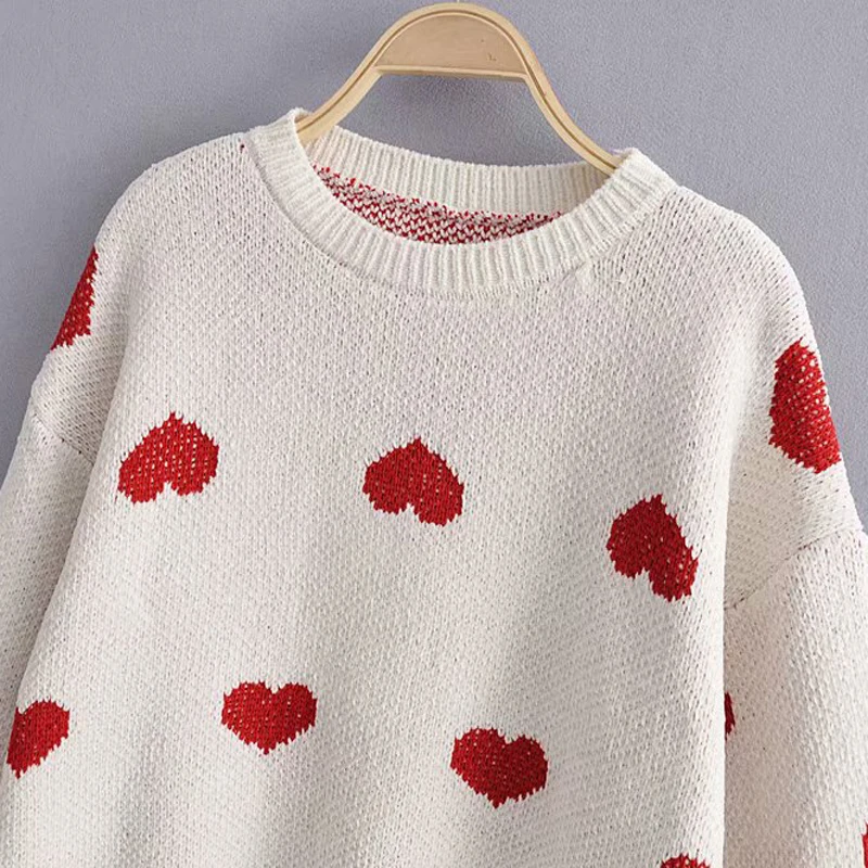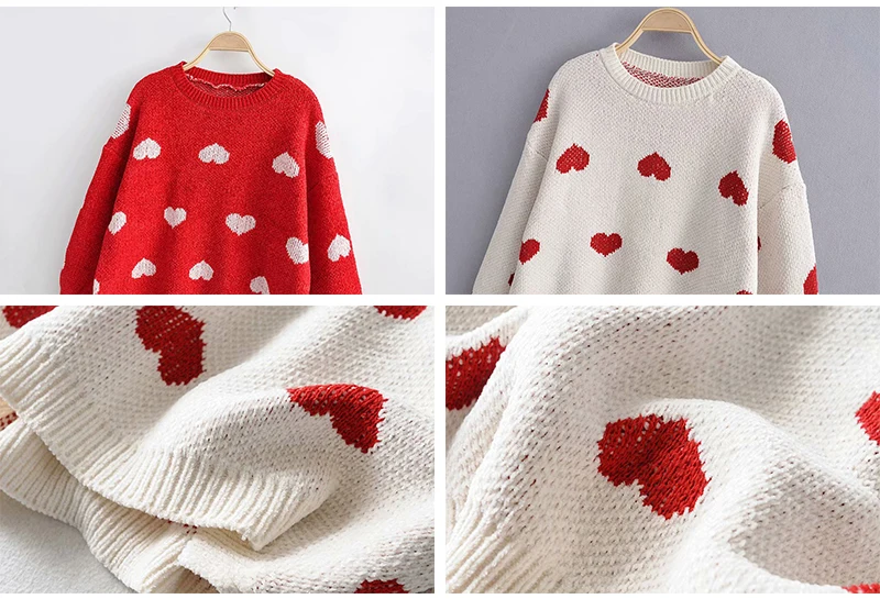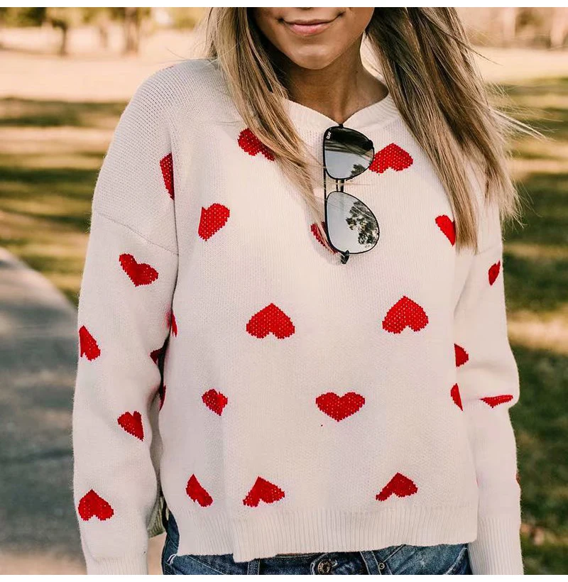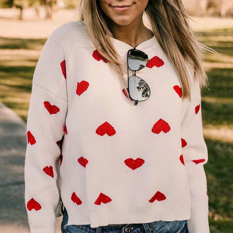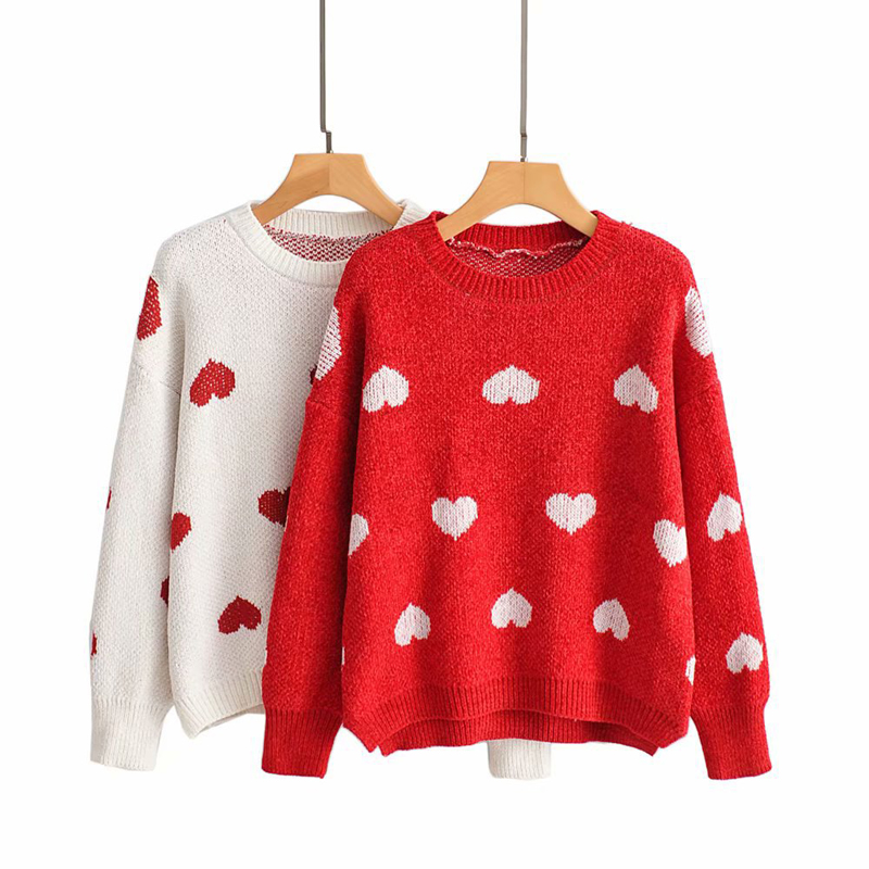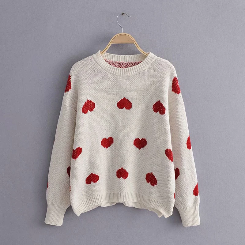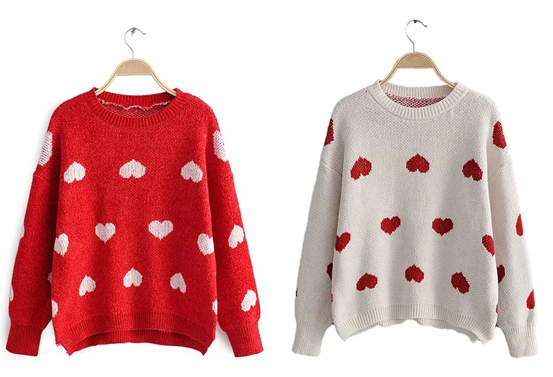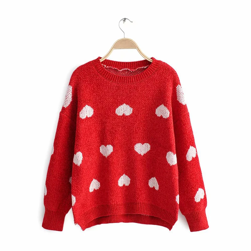 FREE SHIPPING Women Autumn Long Sleeve Heart Print Red Knit Pullovers JKP3048