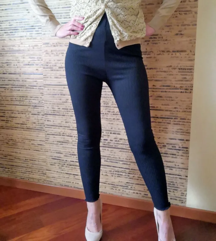 The order is completely satisfied. The size approached perfectly. My parameters: height 166, weight 53, 88-70-88. Landing high, at the waist decorative assembly on a wide elastic band. The edges of the pants are overlaid and beautifully lie. The material is mixed, very nice and elastic. Stretches in width, but not in length. Suitable for a larger volume of hips. Sewing is excellent, the quality is factory. Packing -- customized package. Delivery on time, track. Boldly recommend.