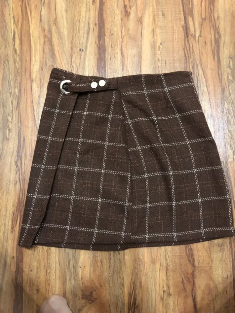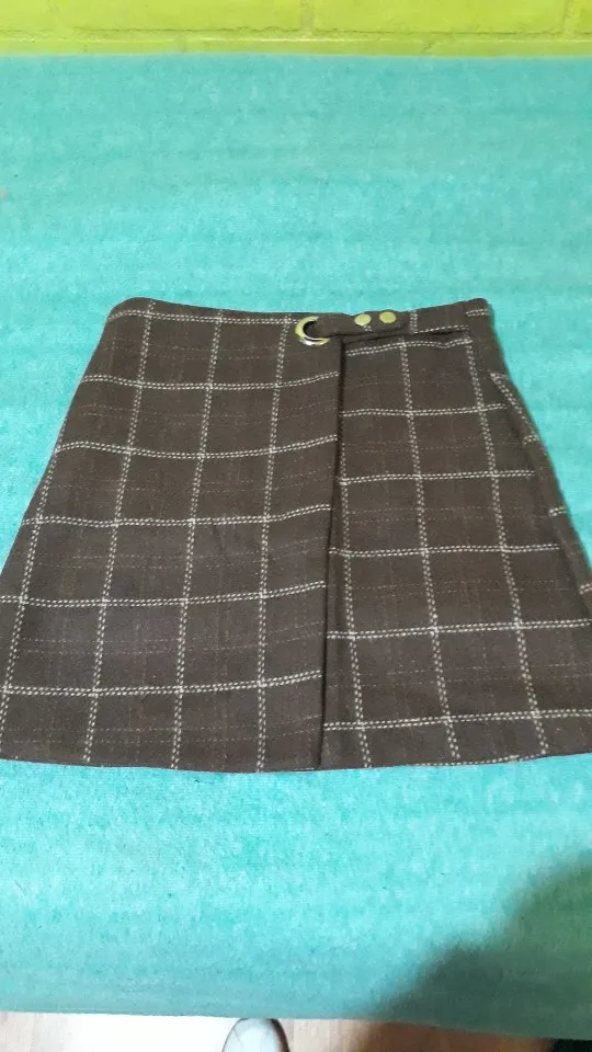 FREE SHIPPING Women Autumn Winter Harajuku Thickened Woolen Plaid Retro Skirt JKP1701