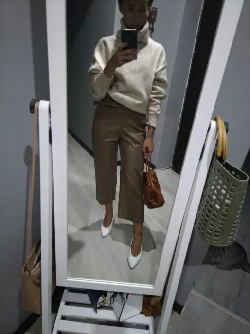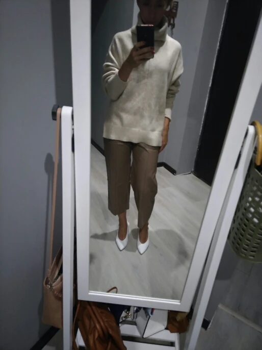 Very beautiful pants, purchase is happy, but the front protruded strings and the edge of the bottom is not processed. Slightly darker than in the photo. But still sooo happy with the purchase.