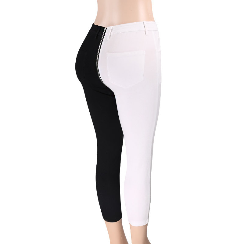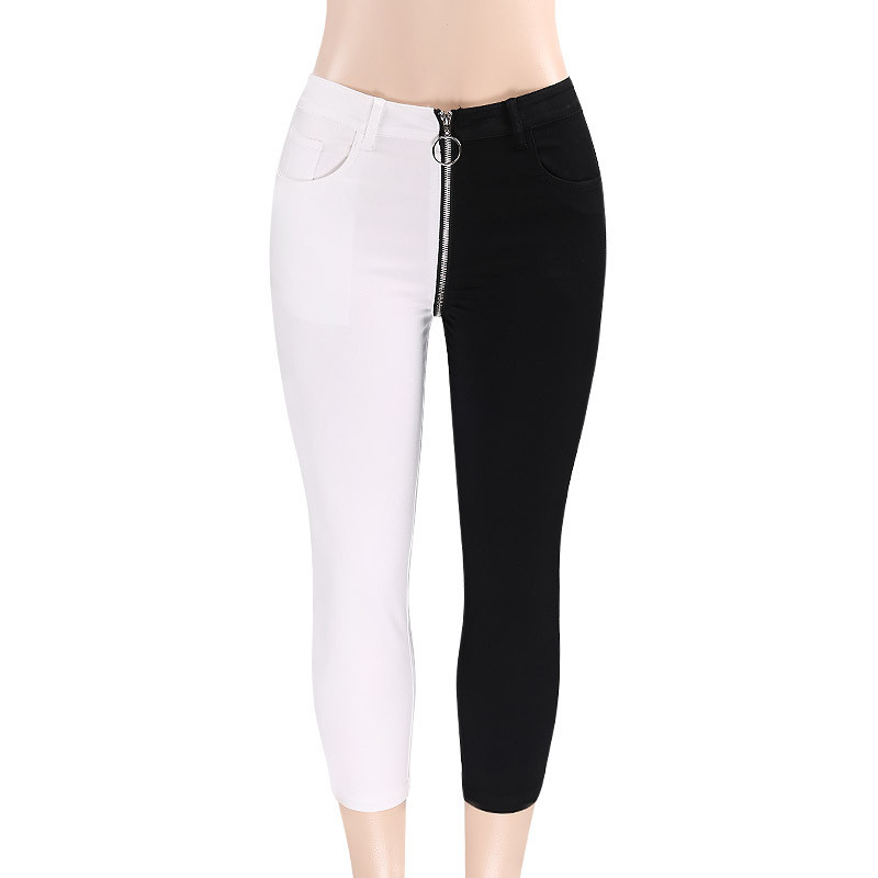FREE SHIPPING Women Black White Leg Casual High Waist Pants Zipper Fit Trousers JKP1265
