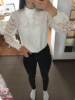 Blouse came. Beautiful very much. I took for 825r, we have such hang 1400r. Quality is normal. Everything is in place. Fit perfectly. I took S, I usually wear 42-44 size. My parameters are og 84, OT 68, shoulders 36. The sleeve is slightly long and the cuffs on the sleeves are wide, but I will slightly transfer the buttons and there will be norms. Ordered 11.03 received at mail 15.04. The store sent the order for a very long time, until I wrote to him, then the parcel was lost somewhere. I wrote again to the seller, he found the parcel, or else he sent it again. And so would the order come faster. But the wait was worth it, the blouse is very beautiful.