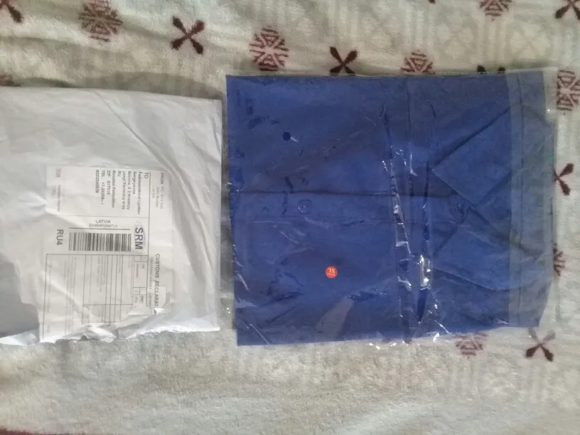 The order was from 09.07 to 03.08. The parcel was taken in the post office. Description accurate. The smell is, but not significant, after washing will not. Threads stick out not significantly. The color is dark. I wear 48r. Took xl, came up perfectly. My sizes: waist-88, chest-93, shoulder-99. Shirt sizes: shoulder-38, sleeve-58, chest-41.5, length-61, width-46.5. I really liked the shirt!!!