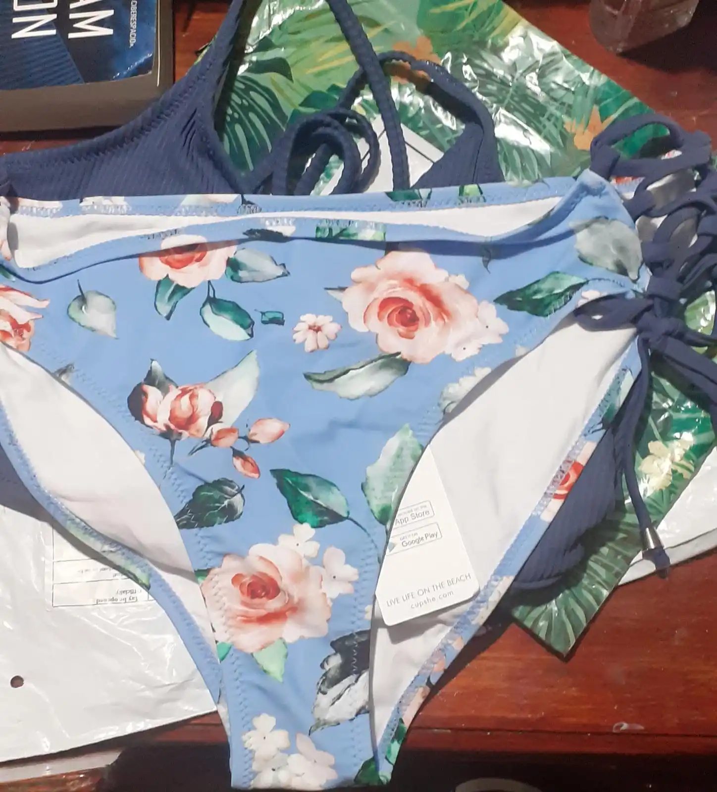 Ordered july 13, received july 26. Tracked completely. The fabric is super, nothing inferior to victoria secret, from which i have a pair of swimsuits, and the design and price is all the more pleasant) on the parameters 83-68-90 ordered xs,, top on a small chest perfectly sat down!! Tightly as you want from a swimsuit that should be in the water. The bottom sat also well, only slightly loosened the ties on the sides, or it was tightened to the maximum. The fabric on the swimsuit is double, the coloring is as in the picture, the hygienic sticker is. I think there would be a swimsuit without strings, then i would take s, but there is an adjustment, so excellent. Tag and sewing branded cupshe, which pleases for such a price! I plan to update all the old swimsuits, so two already lies in the basket for future purchases) in the city for this price of such quality is not.