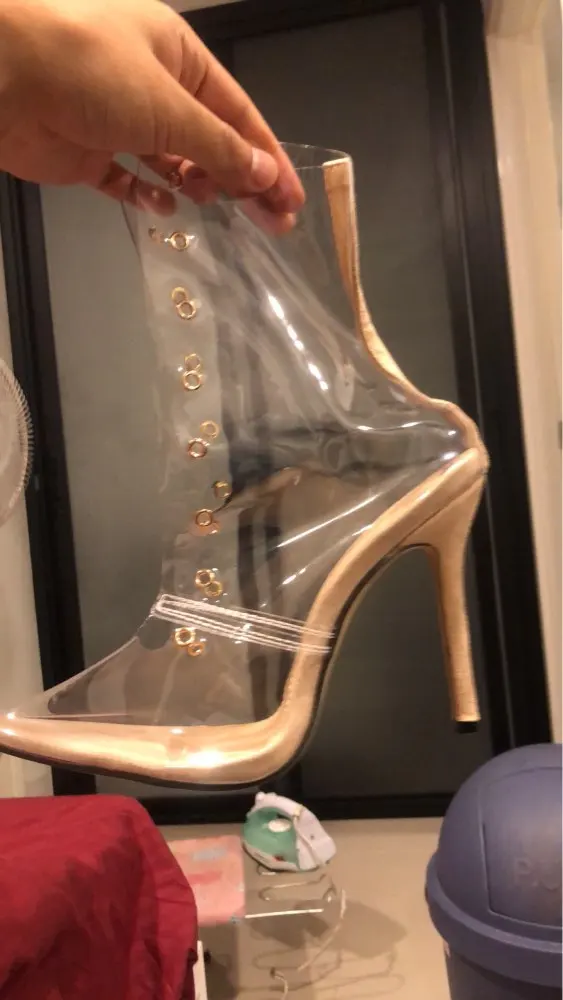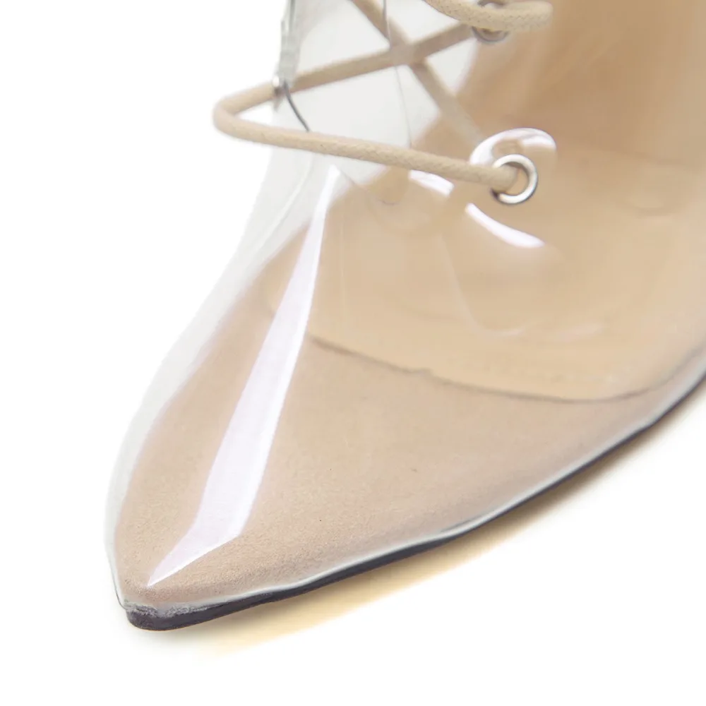 FREE SHIPPING Women Boots Sandals Sexy PVC Transparent Pointed Toe Thin High Heels Shoes Jelly Ankle Boots Cross Tied Lace Up Pumps Mujer JKP1982