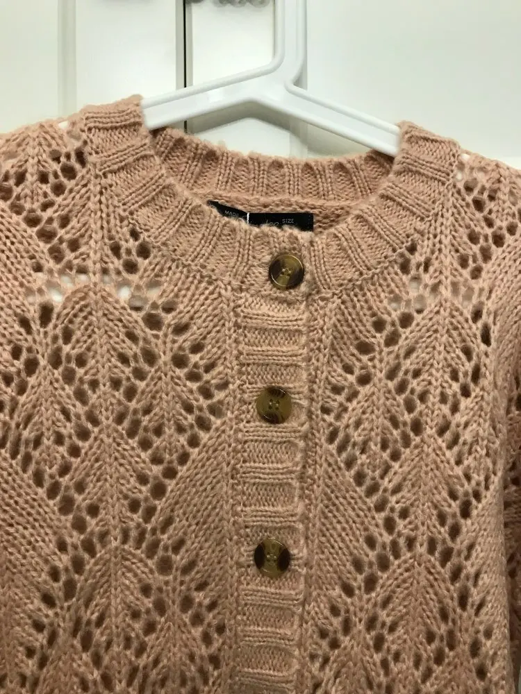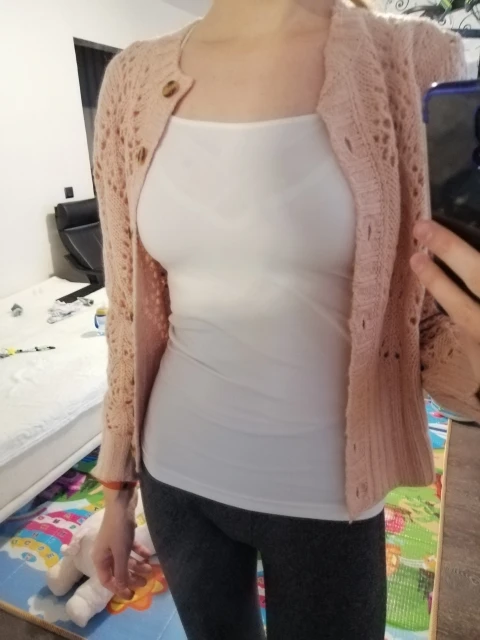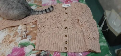 Good cardigan. quality is normal. 46 size og-98 sits freely. It was possible and S to take. Delivery month.