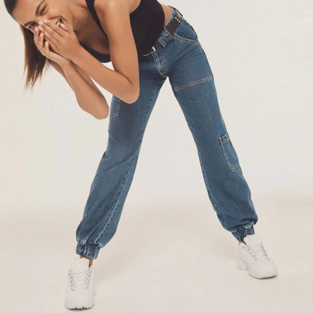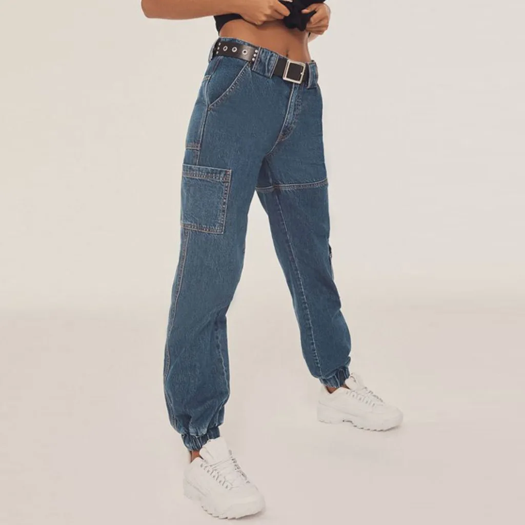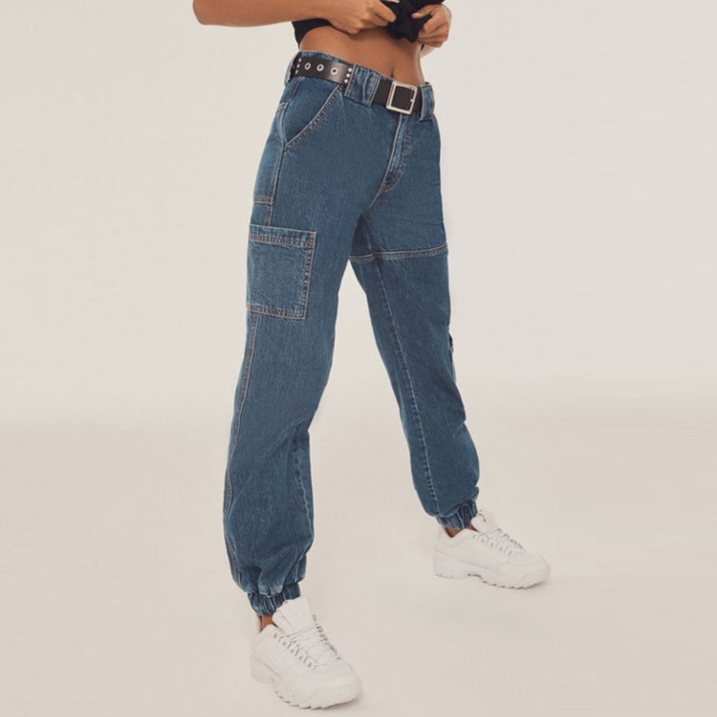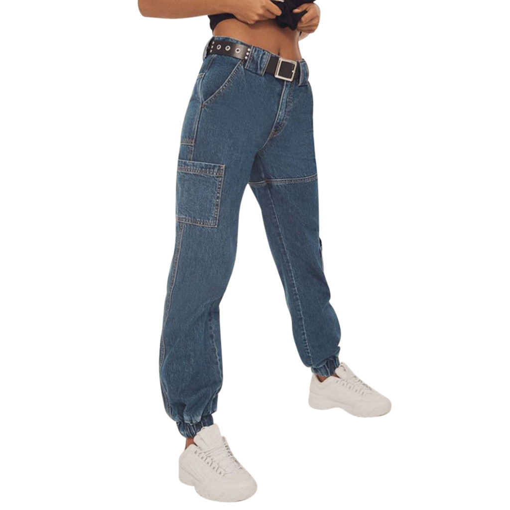 FREE SHIPPING Women Cargo High Waist Denim Pants JKP3058