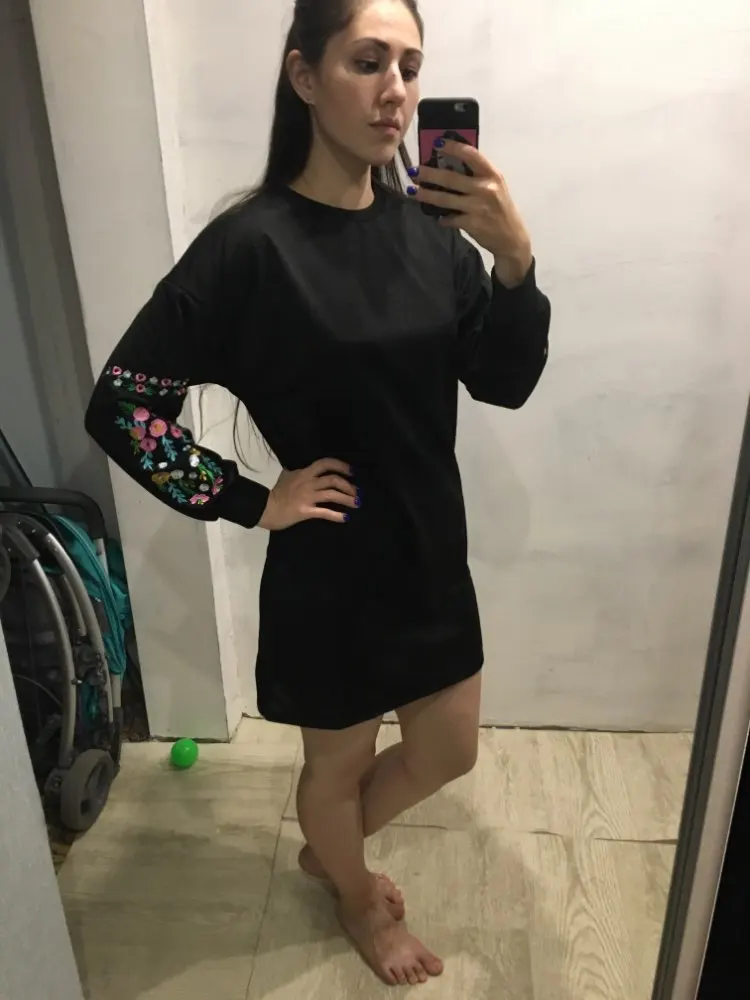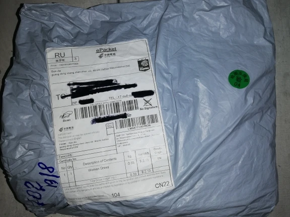 The parcel came very quickly! Could track from China to our post office. The dress came a little big, but it's already my mistake that chose such a size. The pattern on the arms is very beautiful well executed. The dress on the fabric is thin, but it is possible to wear in autumn even in winter.