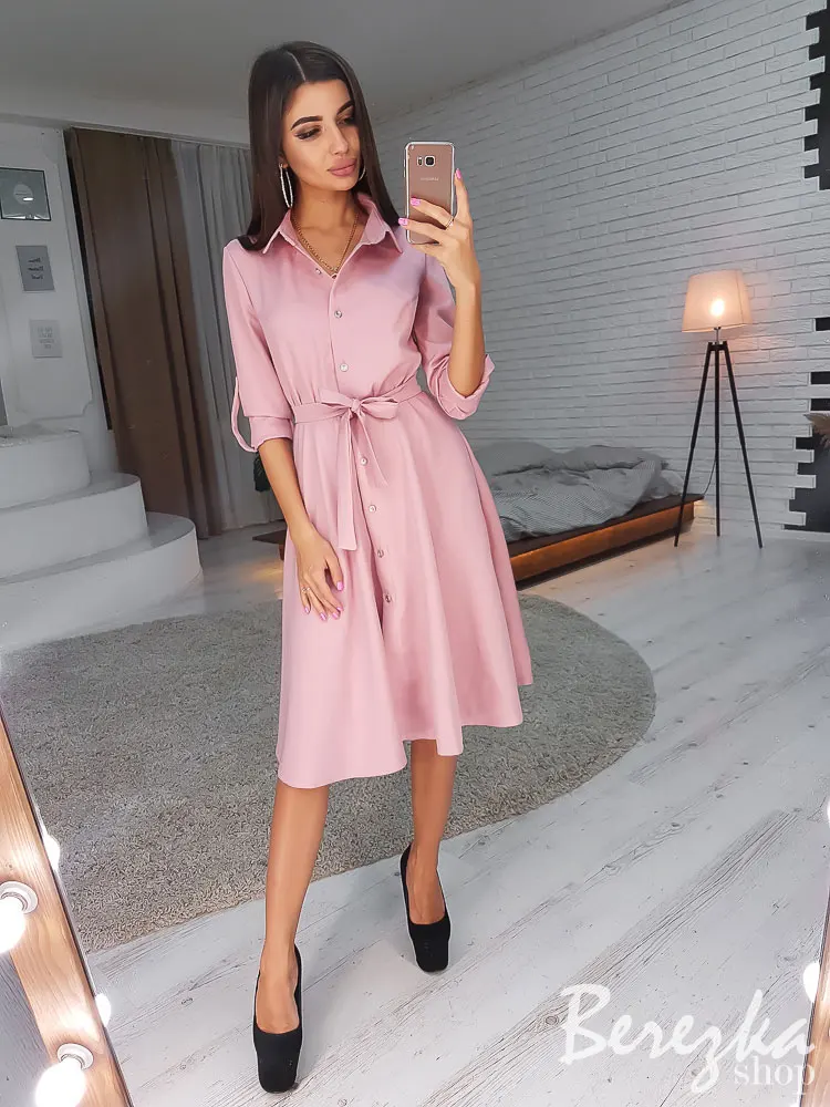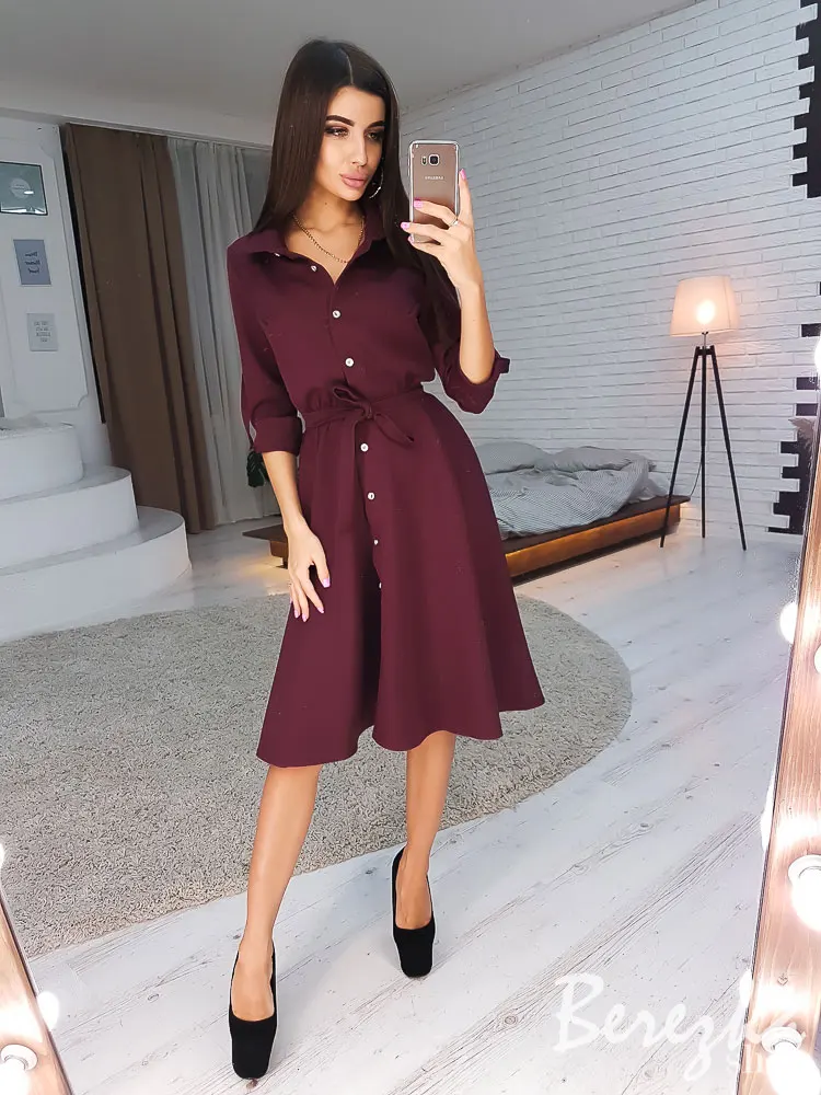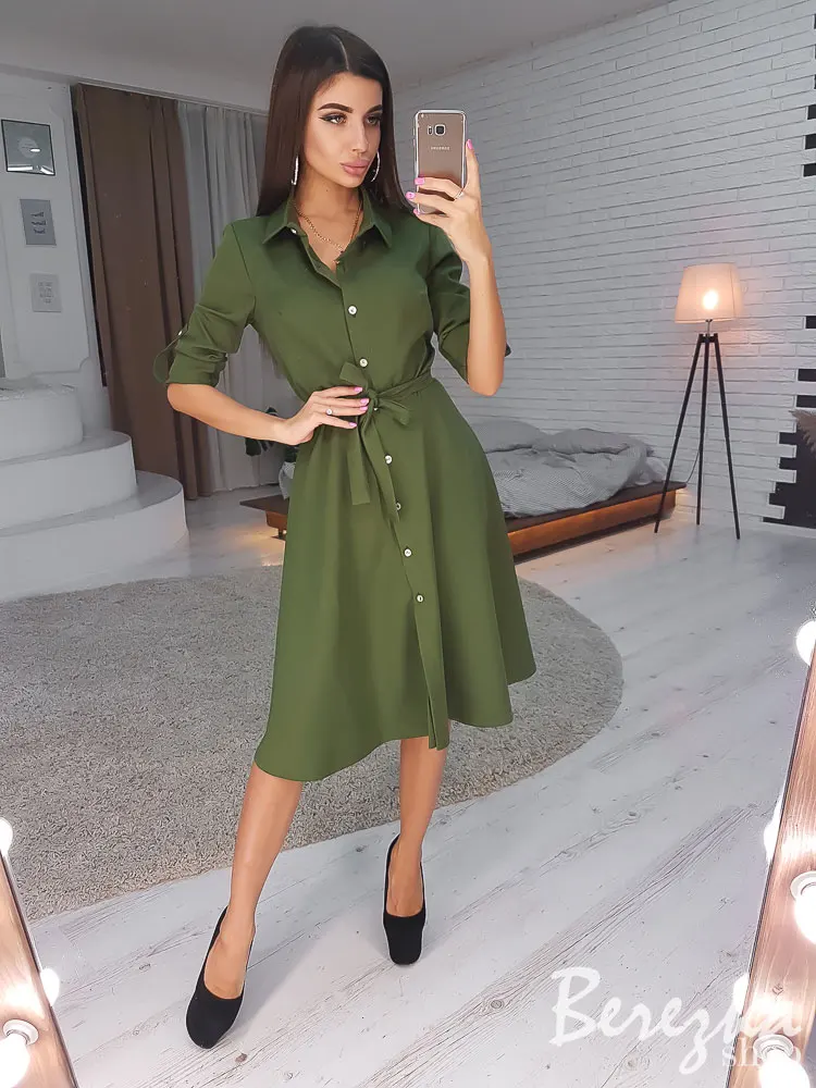 FREE SHIPPING Women Casual Sashes Button A-Line Dress JKP3252