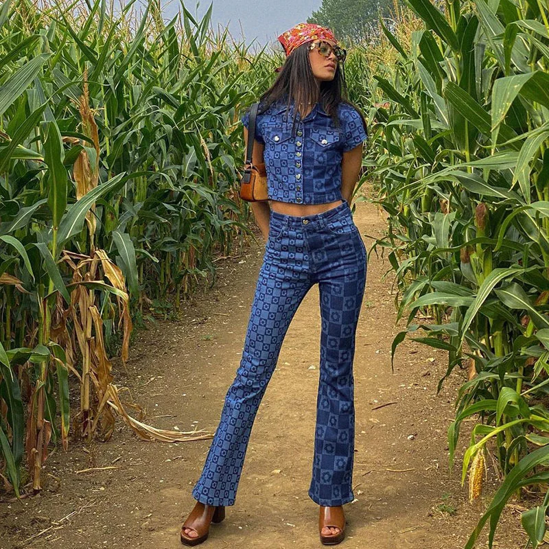 FREE SHIPPING Women Classic Jeans With Vintage Letter JKP4788