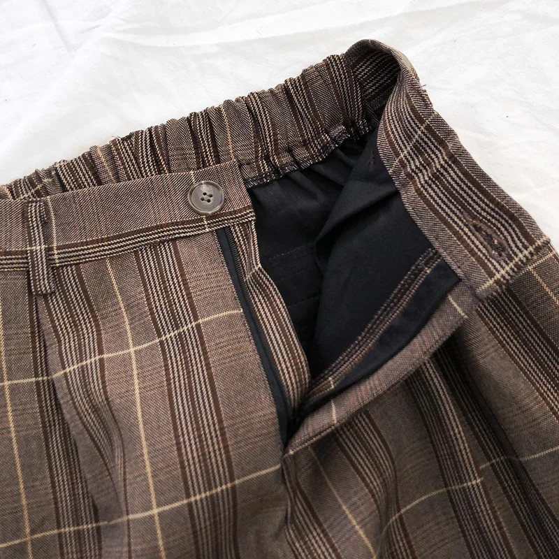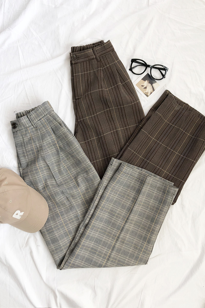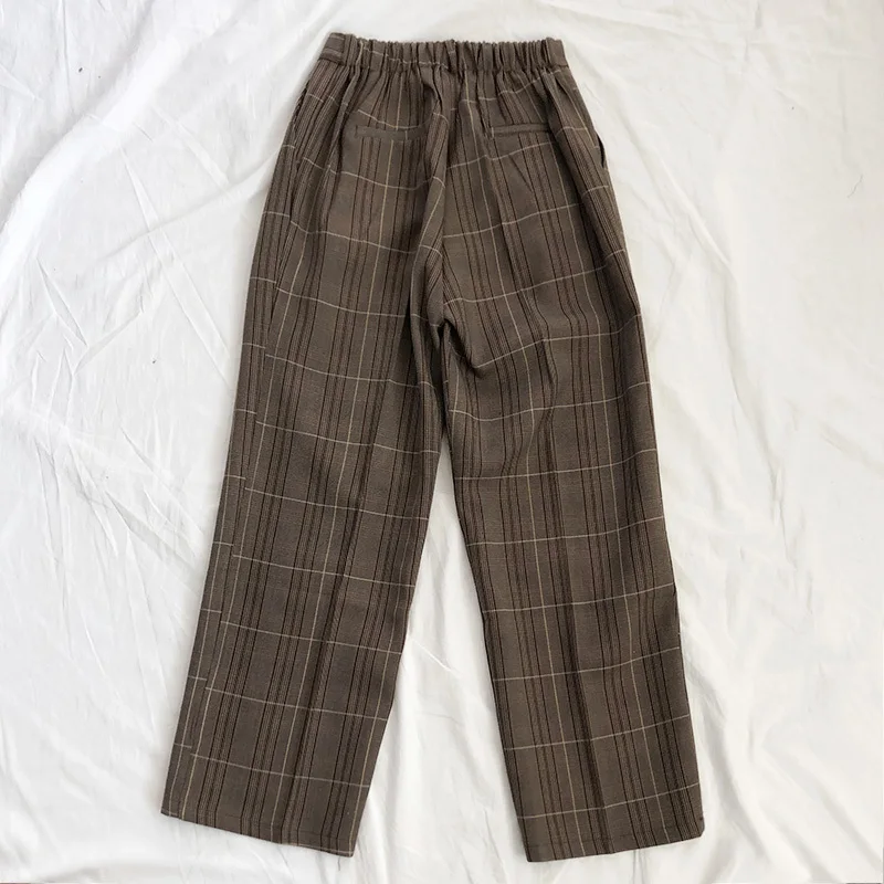 FREE SHIPPING Women Classic Plaid Pants Wide Leg Long Suit JKP4782