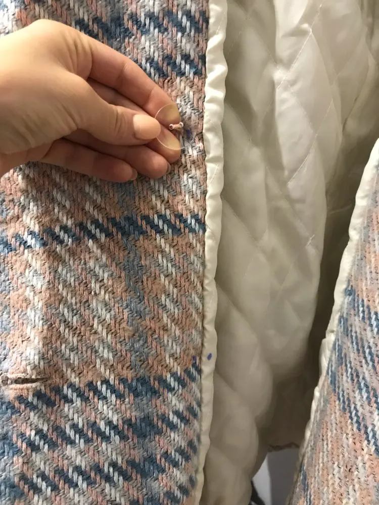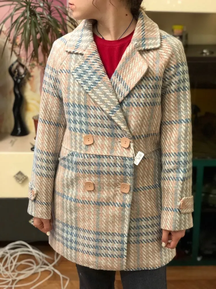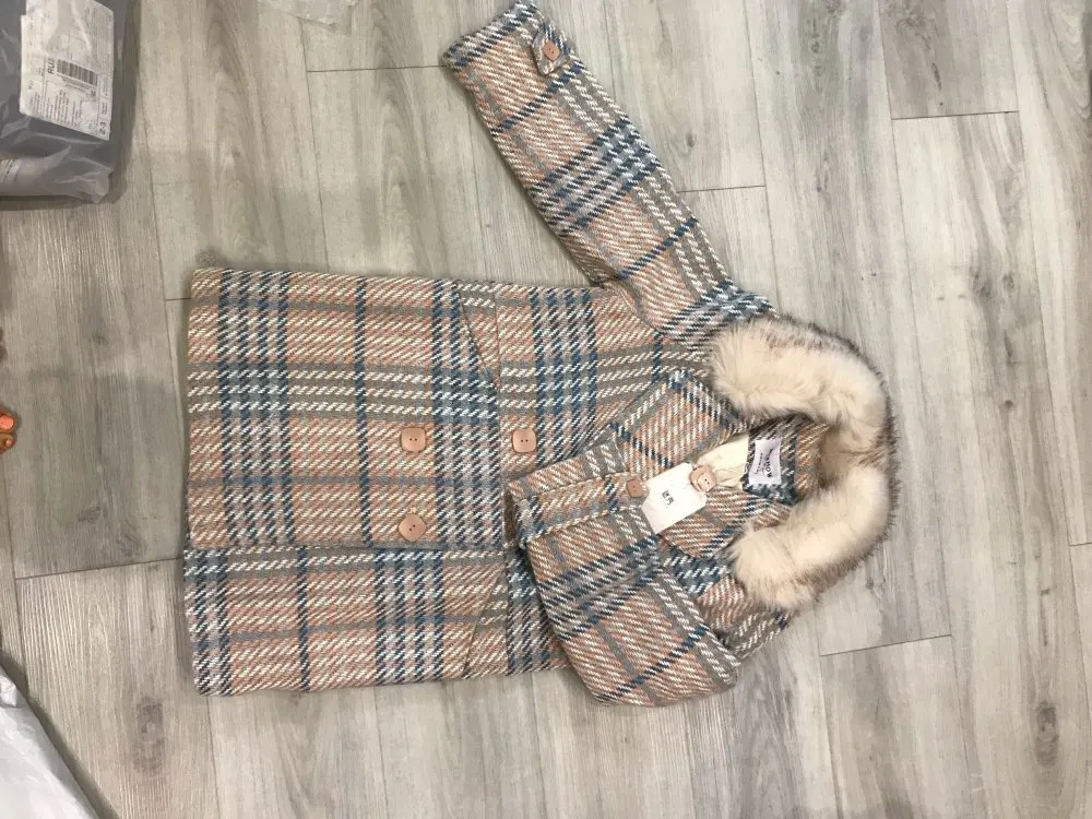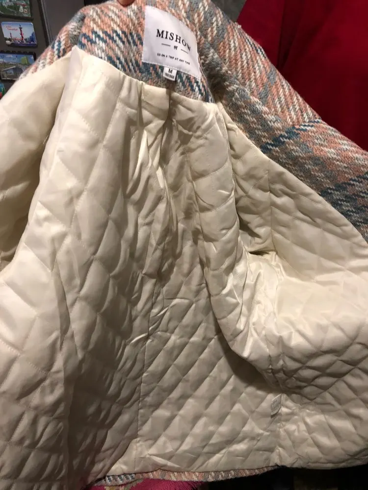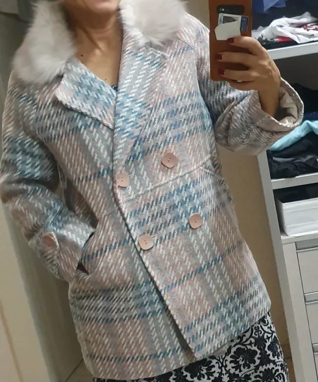 Request sent quickly by store, well packed and quickly came to Brazil. THE jacket fabric is as a twed synthetic, but very beautiful. THE coat is well sewn, has a quilted beige cute and warm lining. Its cutting is straight, not acinturado, and can be used closed or open that is very beautiful; has two pockets delicate. Am satisfied with the shipping and with the purchase. Buy more Sr. seller, that was very attentive and careful