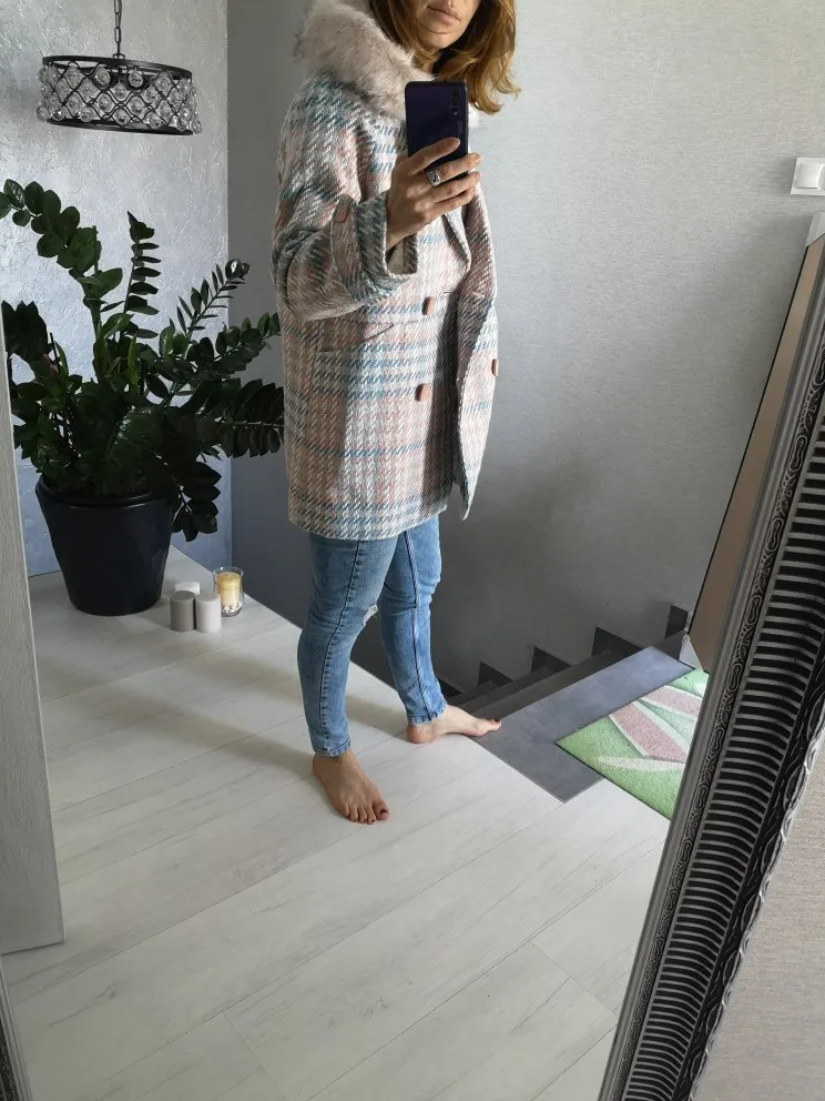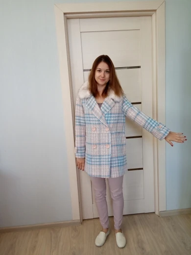 The coat is excellent! In 3 weeks it came. The length is super! At my height 152 the village is ideal, the length is knee-length. Sewn well, in general, i support positive feedback. There was no button inside, but it's not a problem, i'll send a new one. I will change them in general, so that it will be more.