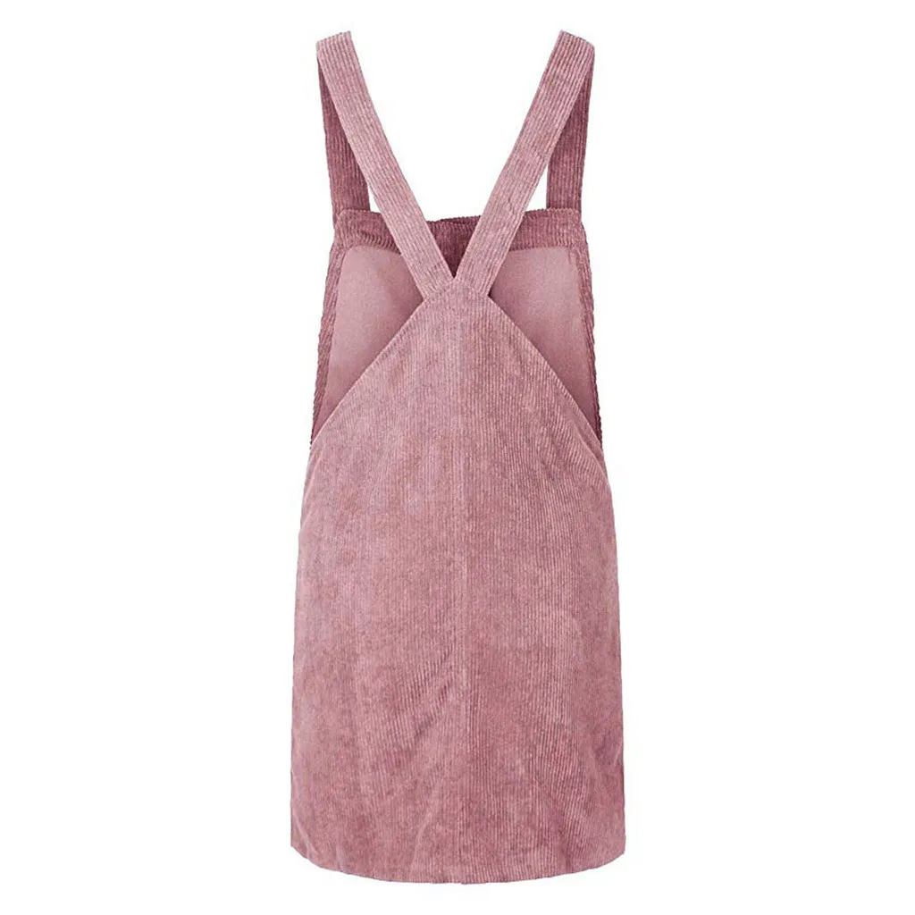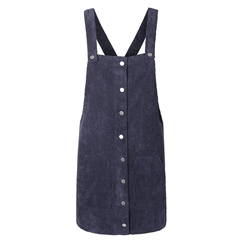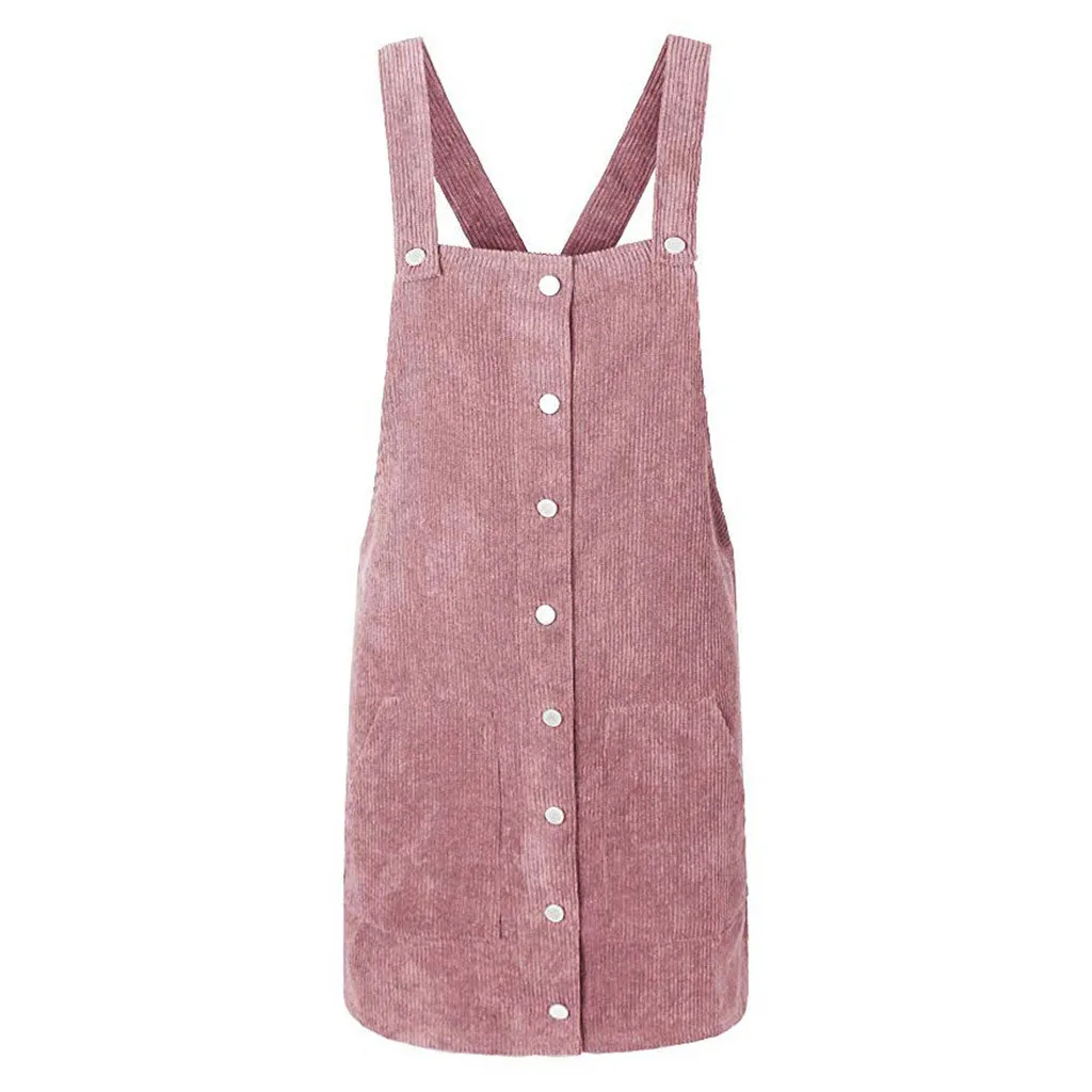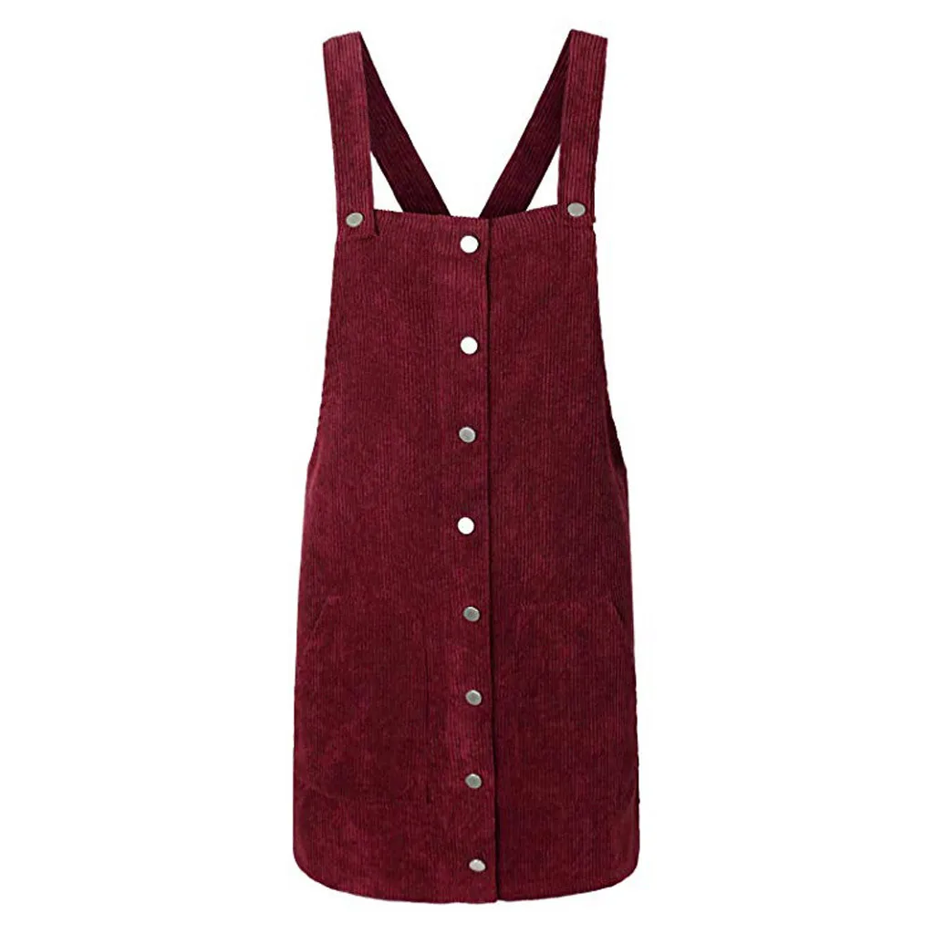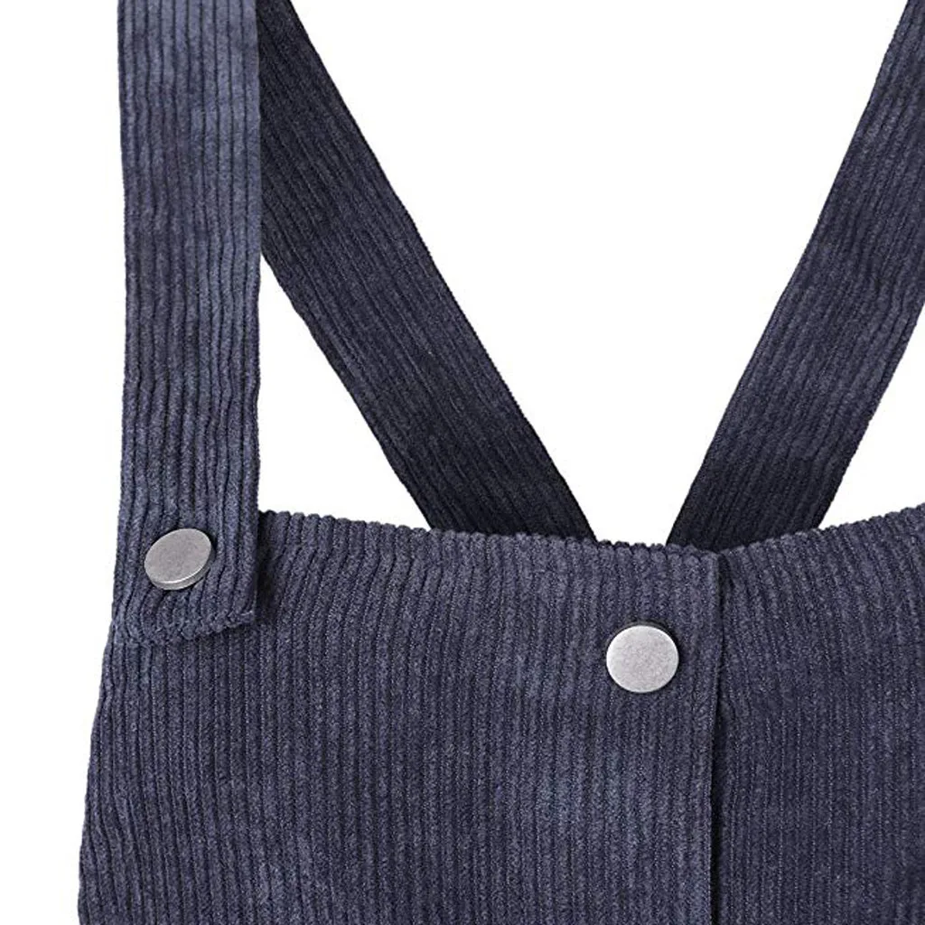 Be the center of attention in this suspender skirt. Corduroy is the focus on design, is a casual wear wild single items. Lightweight and non-elastic fabric. Loose fit silhouette.
