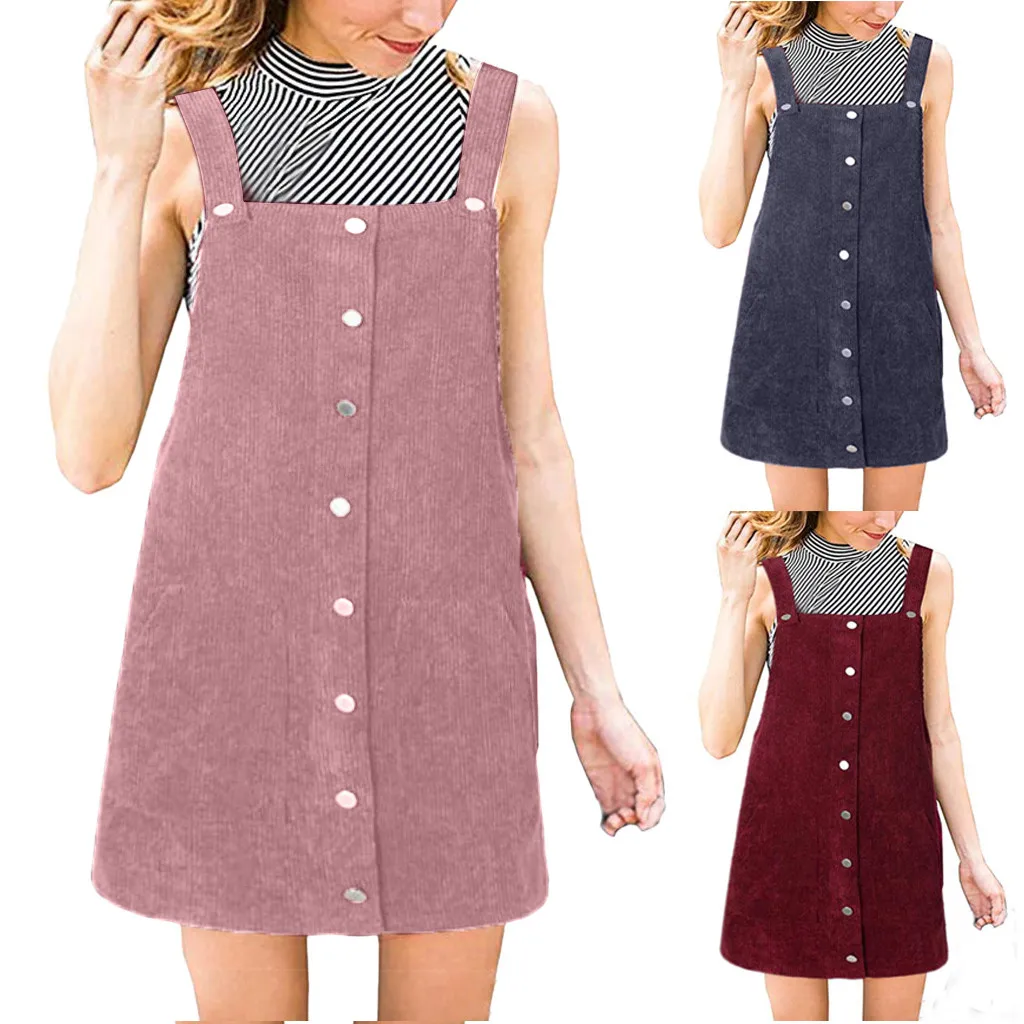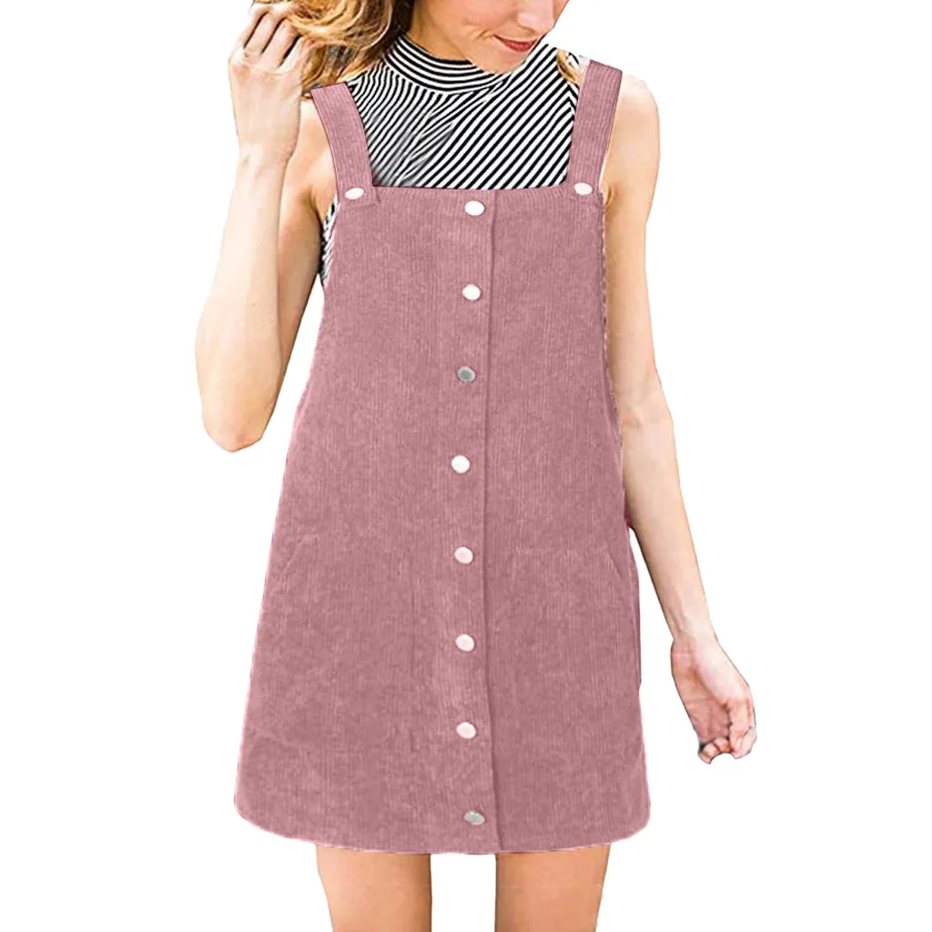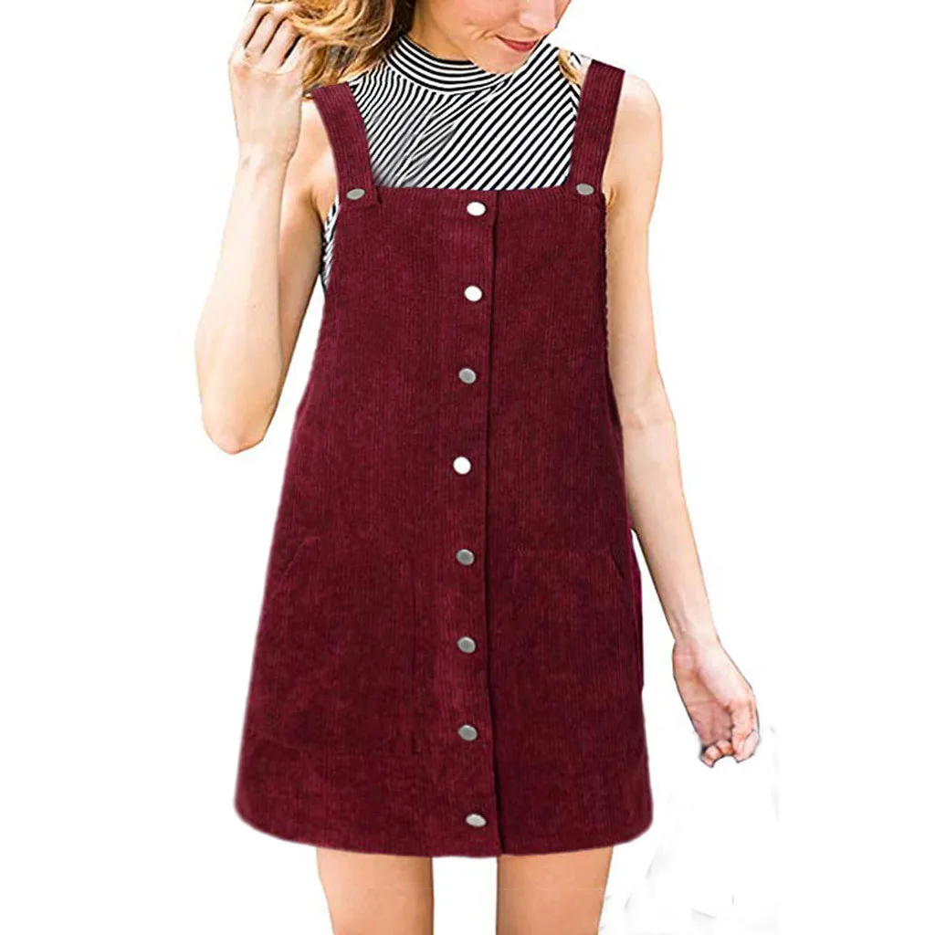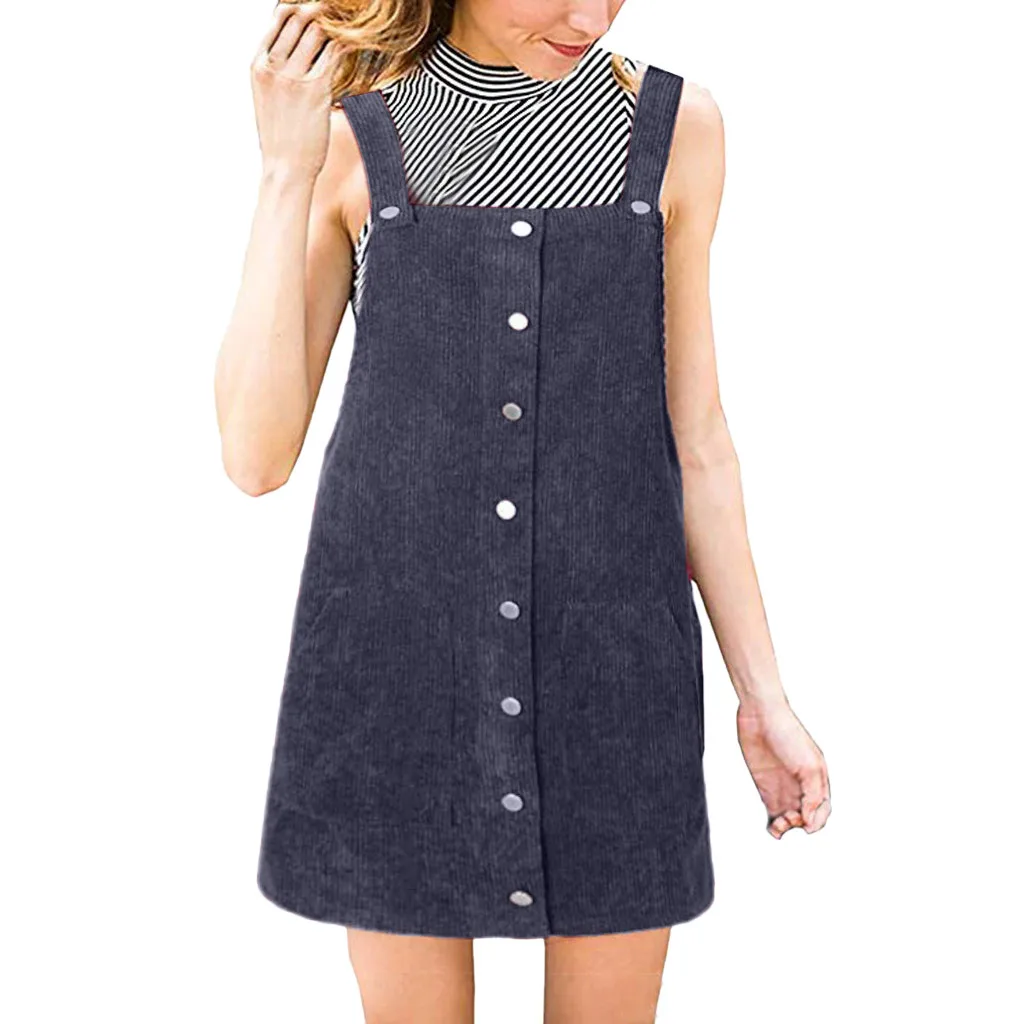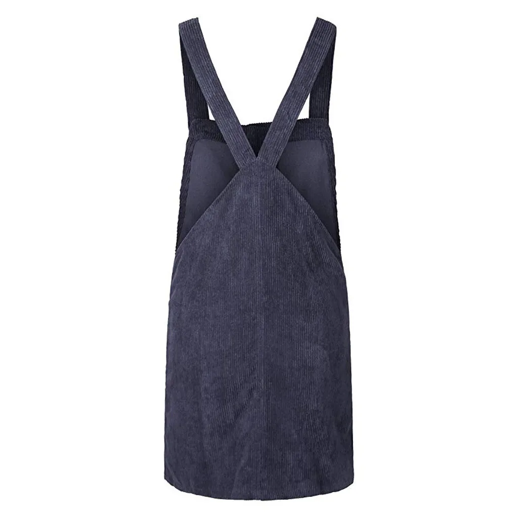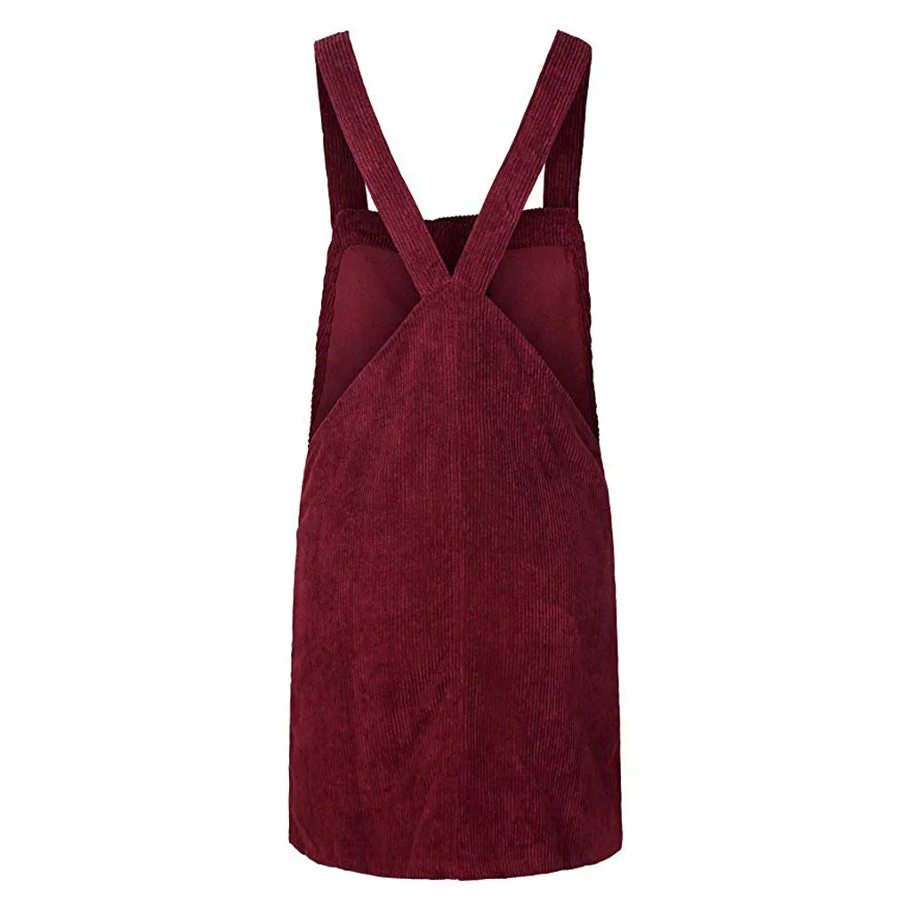 Be the center of attention in this suspender skirt. Corduroy is the focus on design, is a casual wear wild single items. Lightweight and non-elastic fabric. Loose fit silhouette.