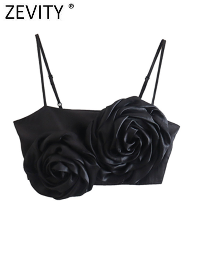 FREE SHIPPING Women Crop Tops High Street Rose Floral Spaghetti Strap Tank Top JKP6139