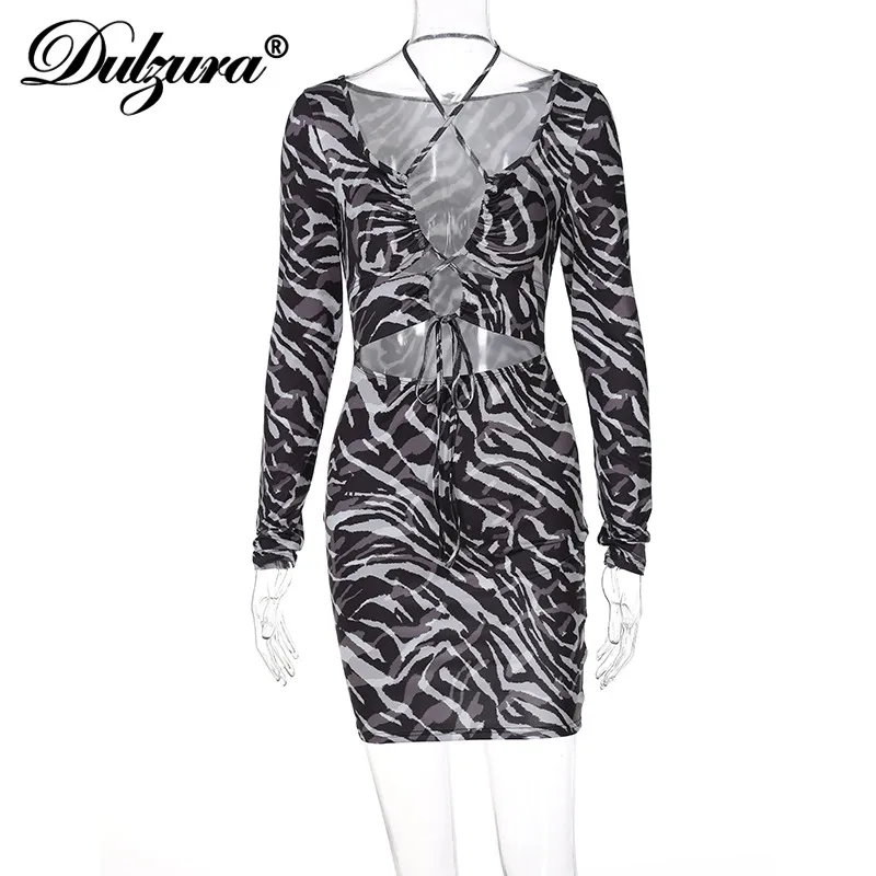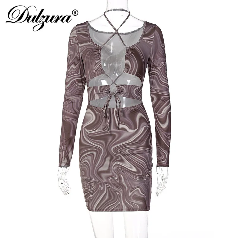 FREE SHIPPING Women Cross Halter Bodycon Lace Up Long Sleeve Mini Dress JKP5891