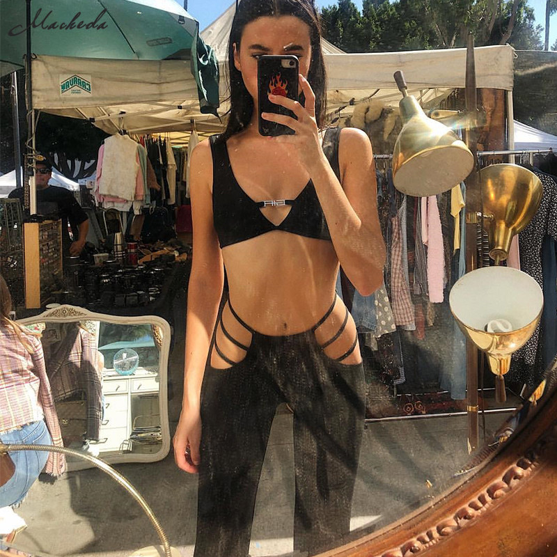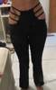 FREE SHIPPING Women Cut Out Holes Slim Fitness Sweat Pants Flare Hollow Out Trousers Streetwear Capris Pant JKP3581