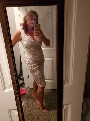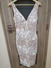 exactly like photos, beautiful dress. order 1 size up.