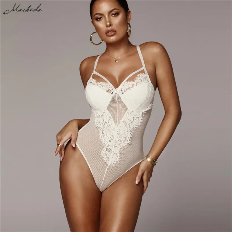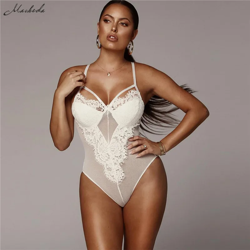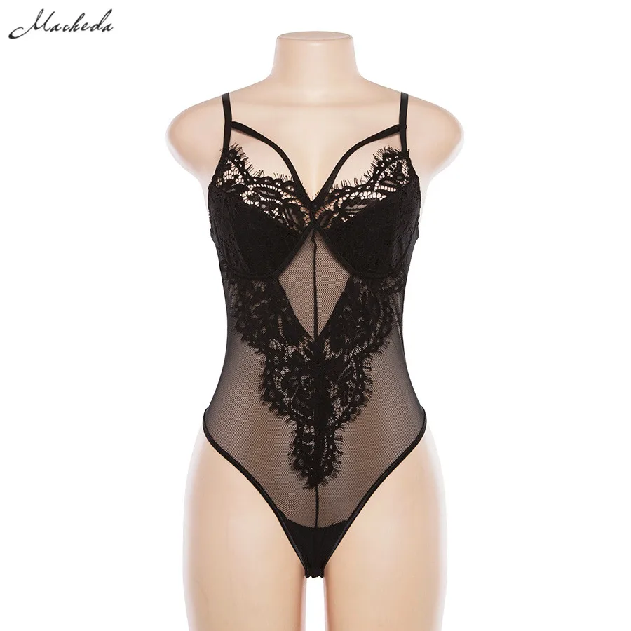 FREE SHIPPING Women Deep V Neck Lace Bodysuit JKP3580