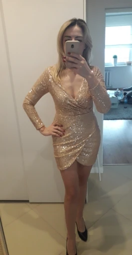 Dress in sequins, a little rash when dressing. Cutout to the navel from above and to the panties from below :)) you can grab everything with a thread, so as not to fall apart. But on the big chest waist high. And the length of the maximum mini. When the waist is more than 60 cm, the dress looks not as impressive as in the picture. I did not communicate with the store. The goods came very quickly